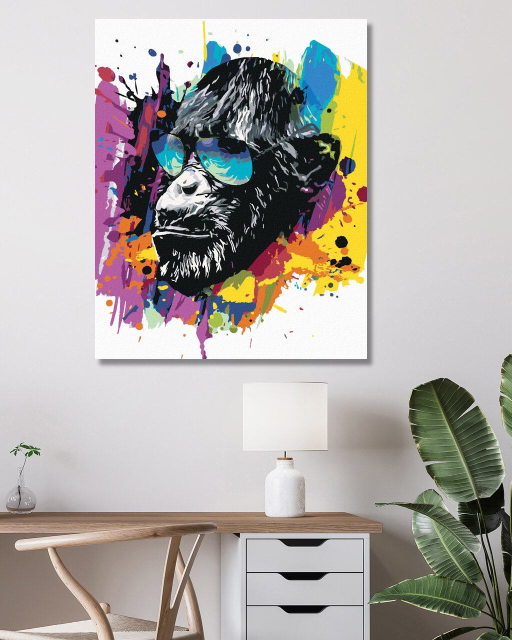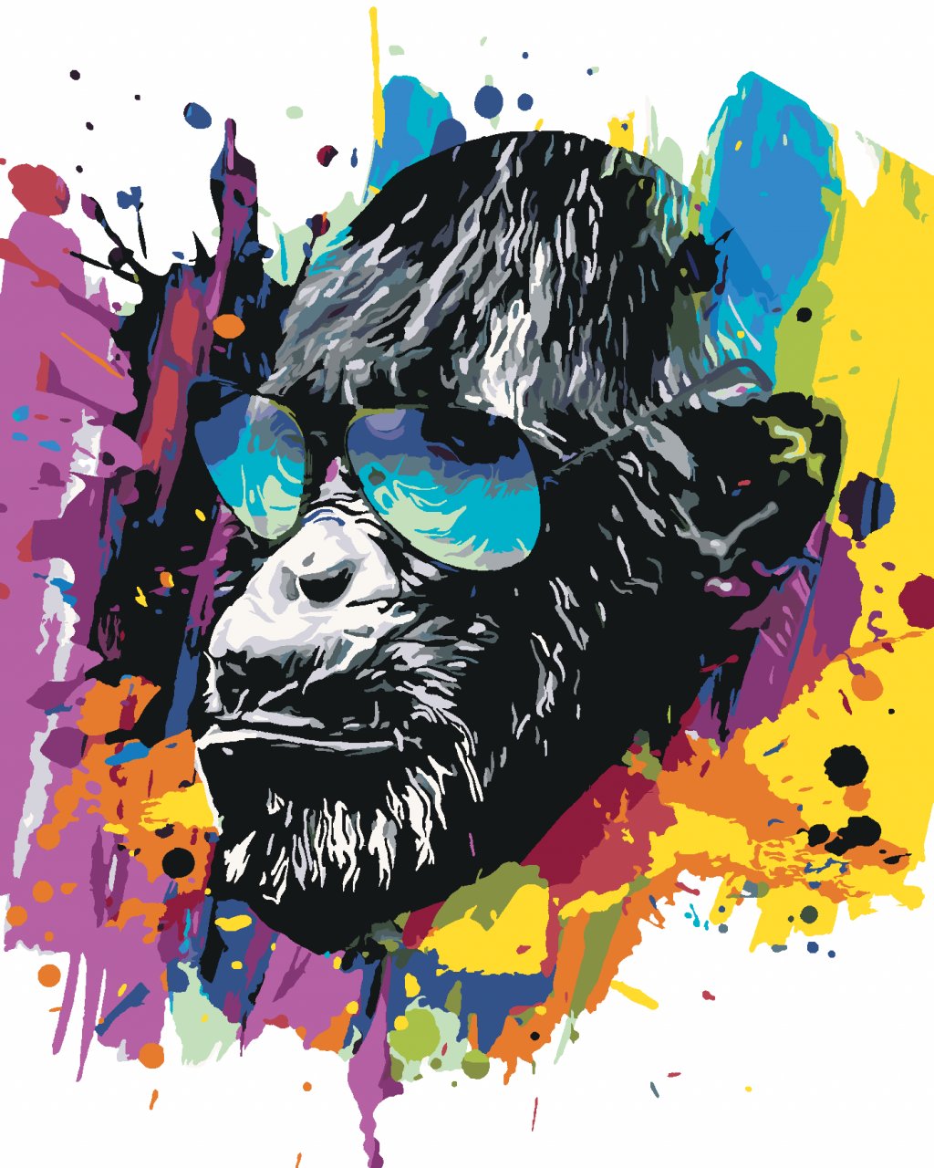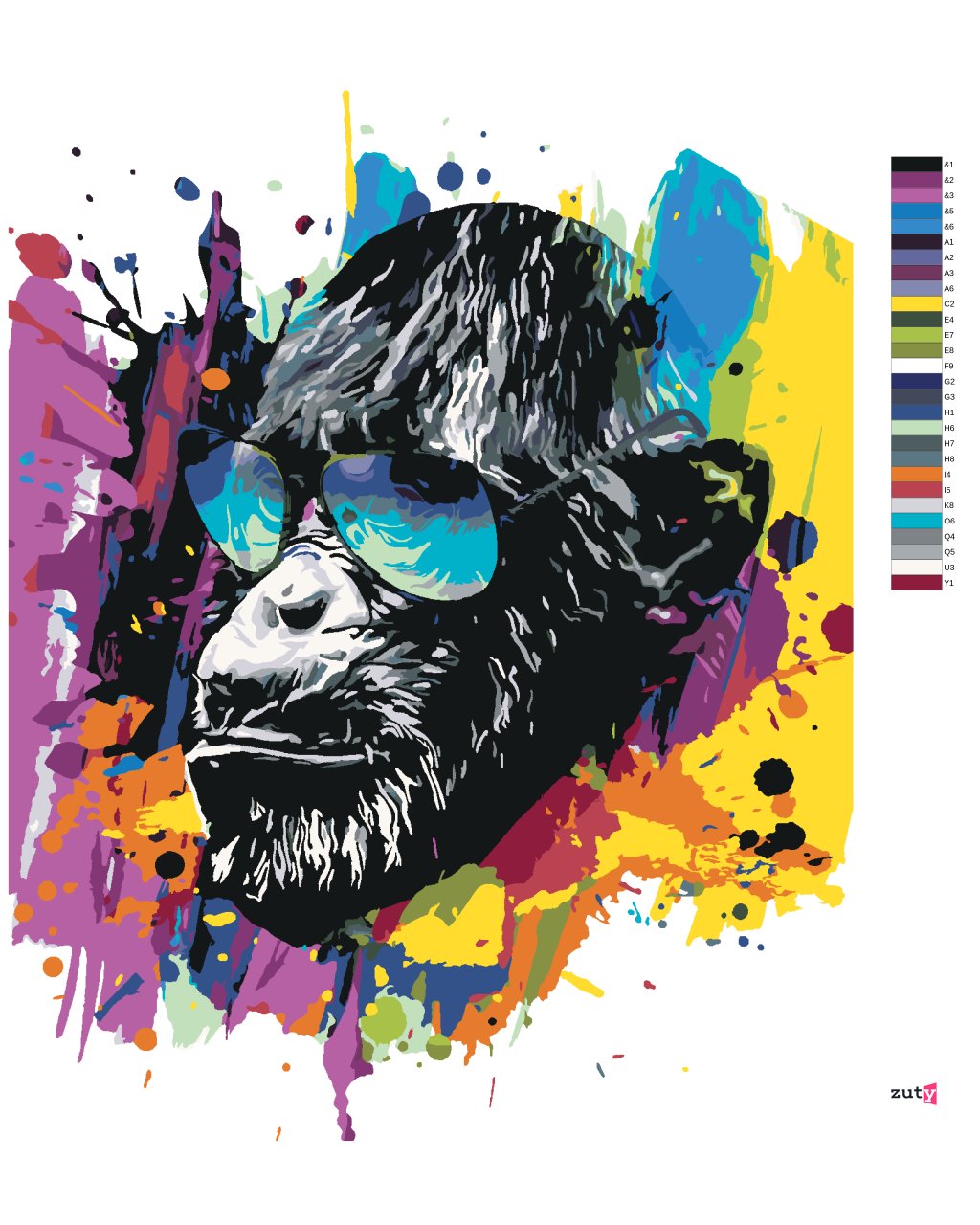 Maľovanie podľa čísel - FAREBNÁ OPICA SO SLNEČNÝMI OKULIARMI