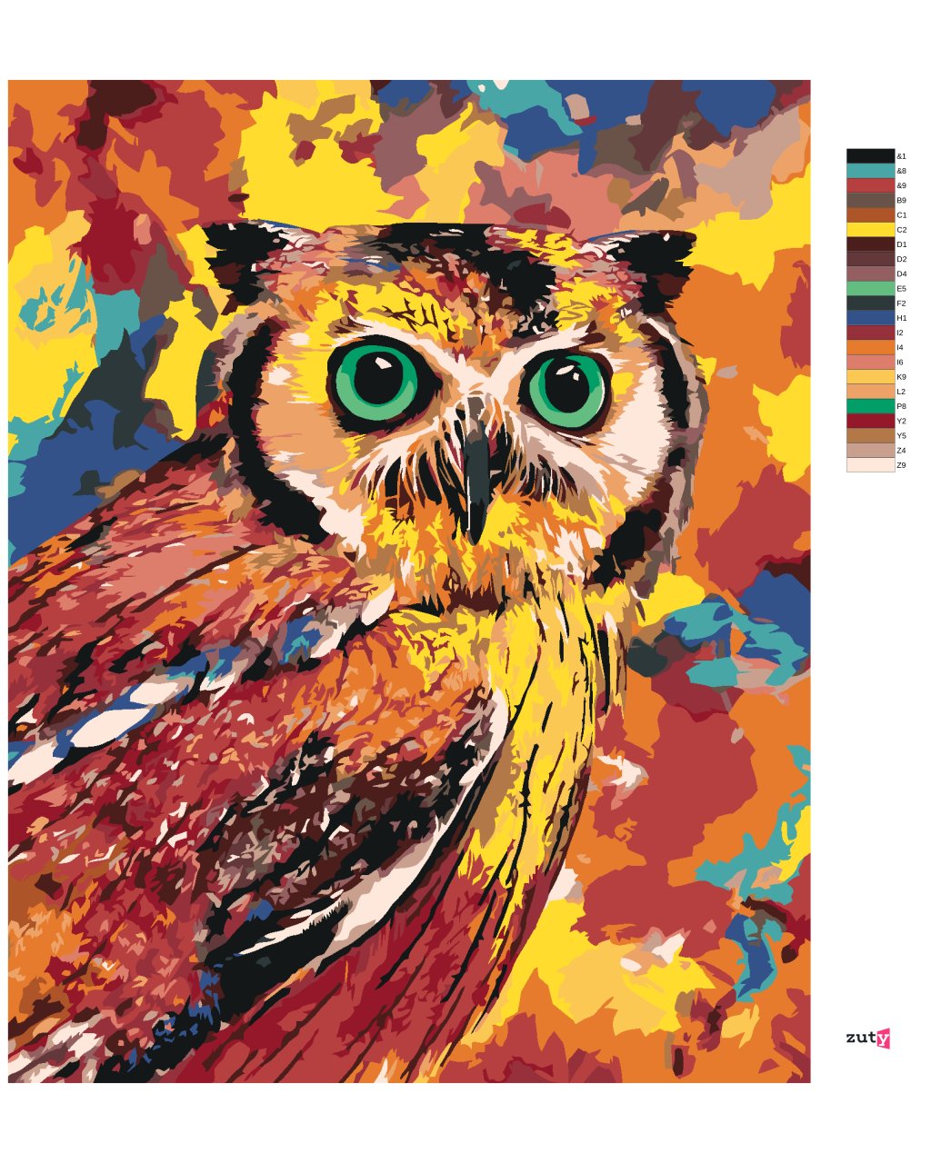 Maľovanie podľa čísel - FAREBNÁ SOVA