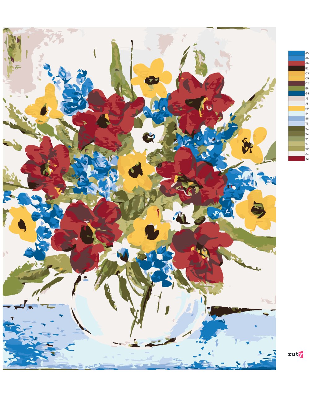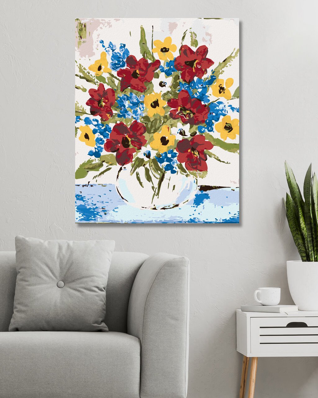 Maľovanie podľa čísel - FAREBNÉ KVETY VO VÁZE (HALEY BUSH)