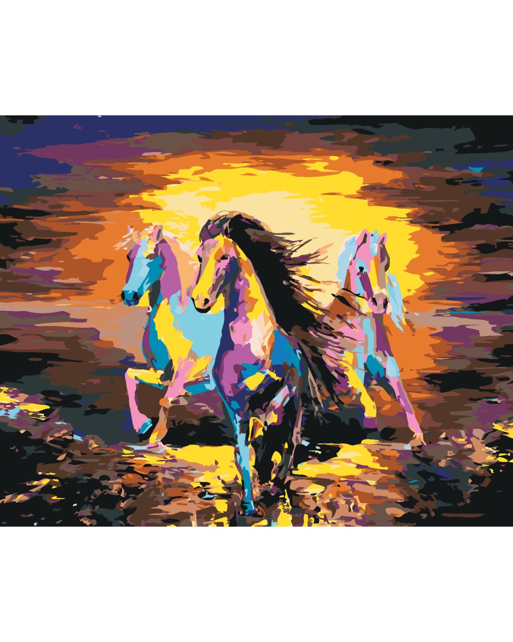 Maľovanie podľa čísel - FAREBNÉ STÁDO KONÍ