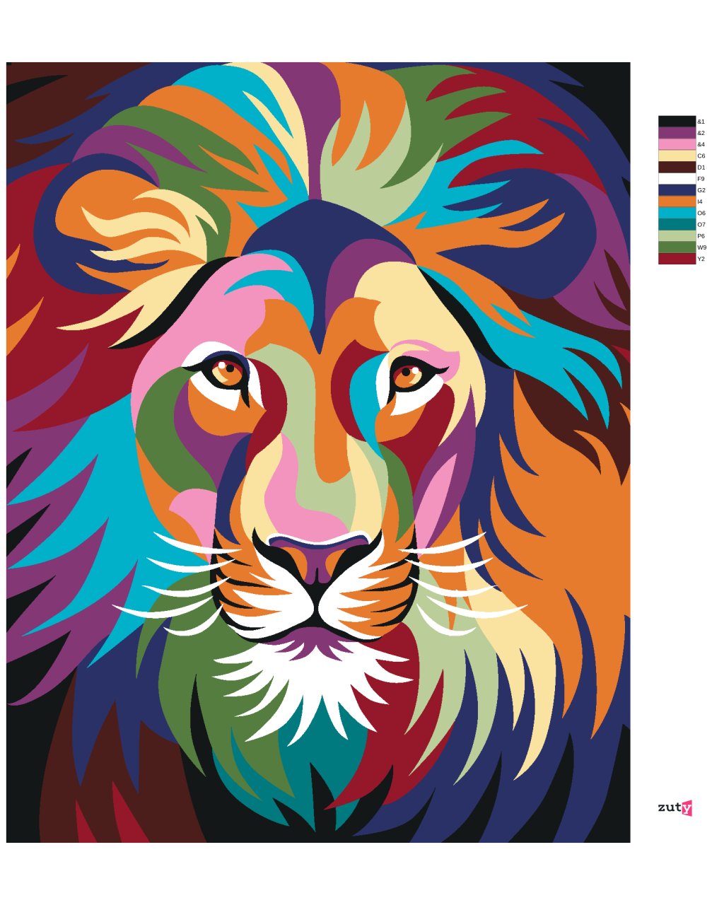 Maľovanie podľa čísel - FAREBNÝ LEV S HRIVOU