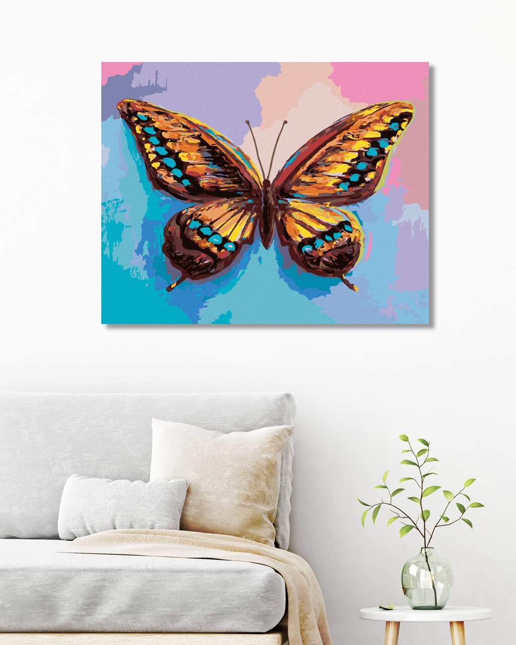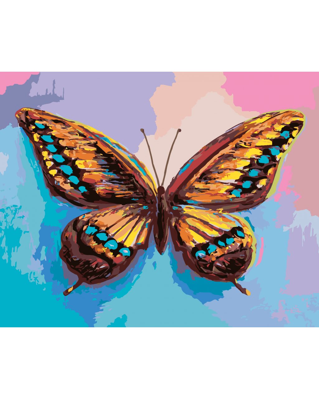 Maľovanie podľa čísel - FAREBNÝ MOTÝĽ NA RUŽOVOMODROM POZADIÍ
