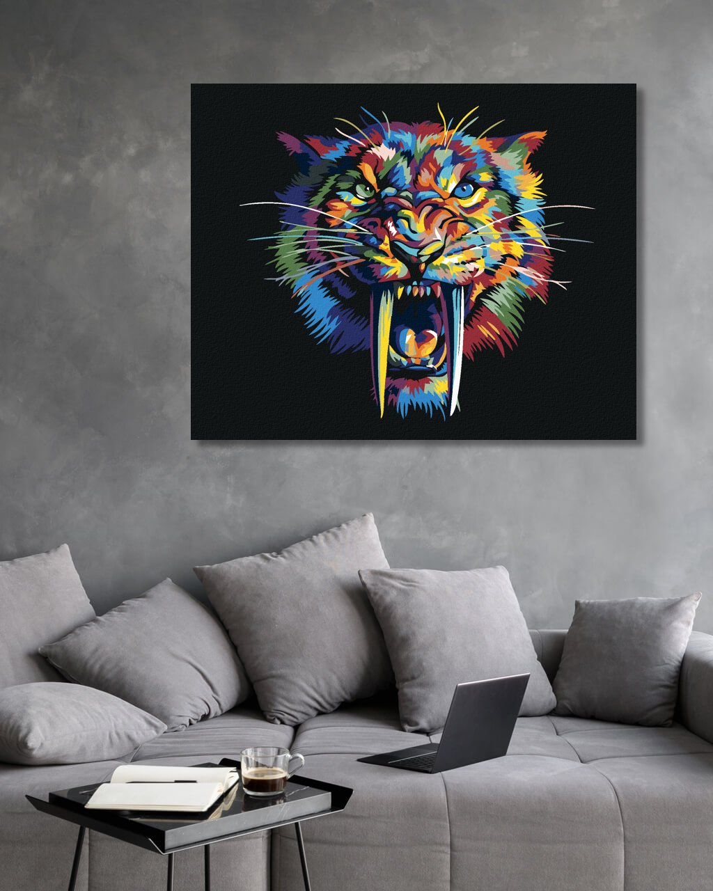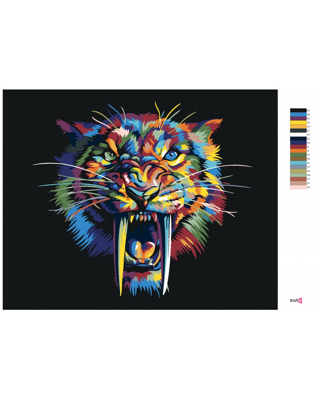 Maľovanie podľa čísel - FAREBNÝ ŠABĽOZUBÝ TIGER