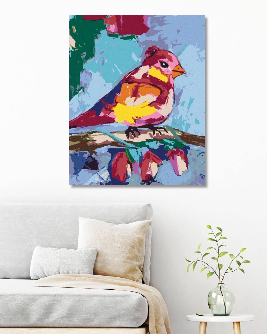 Maľovanie podľa čísel - FAREBNÝ VTÁČIK NA KONÁRI