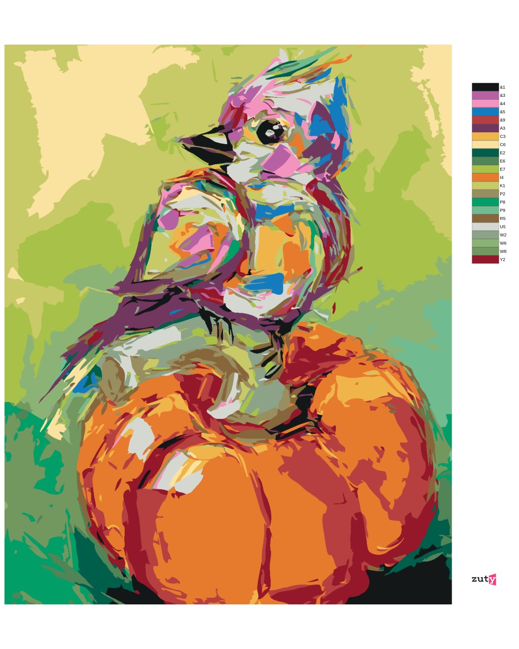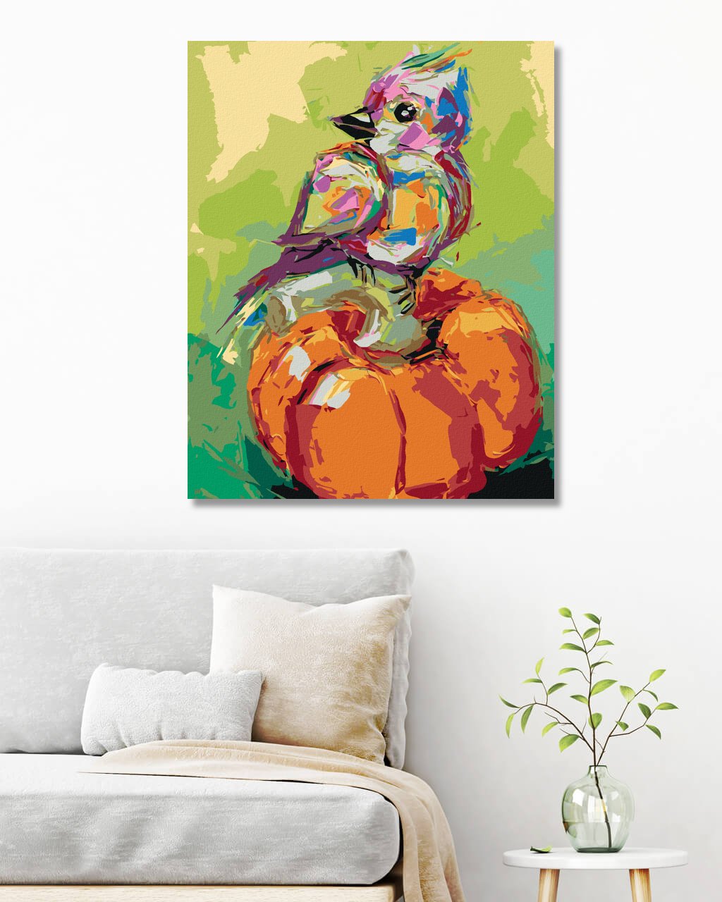 Maľovanie podľa čísel - FAREBNÝ VTÁK NA TEKVICI
