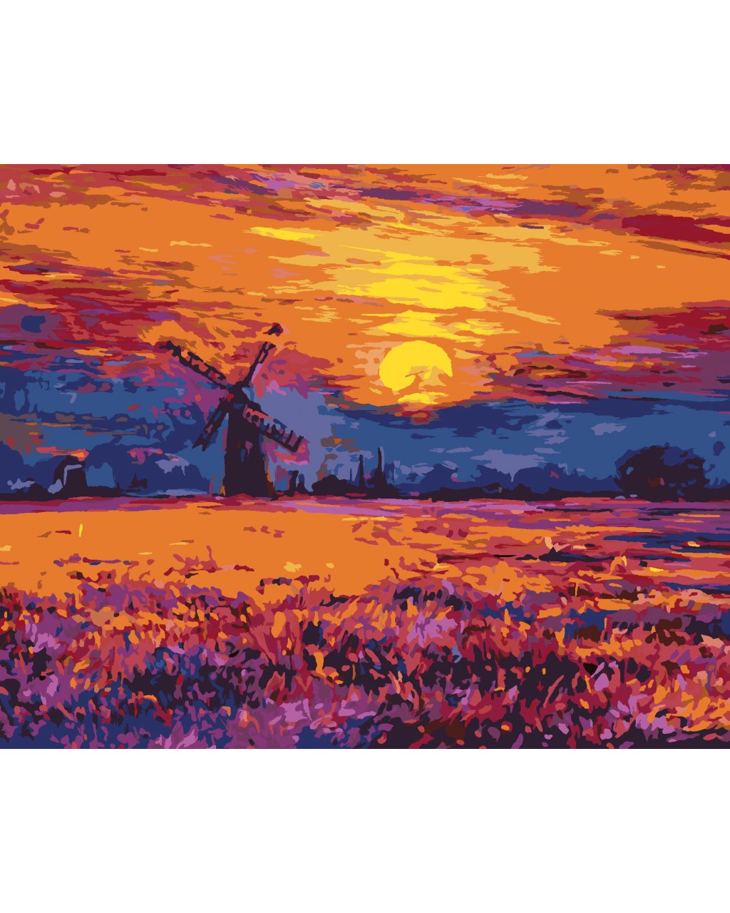 Maľovanie podľa čísel - FAREBNÝ ZÁPAD SLNKA A VETRNÝ MLYN