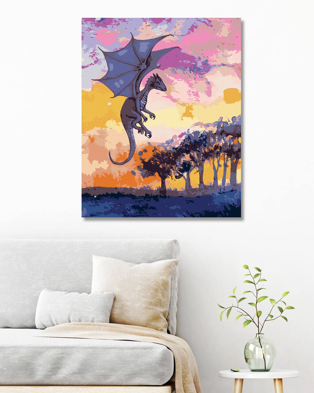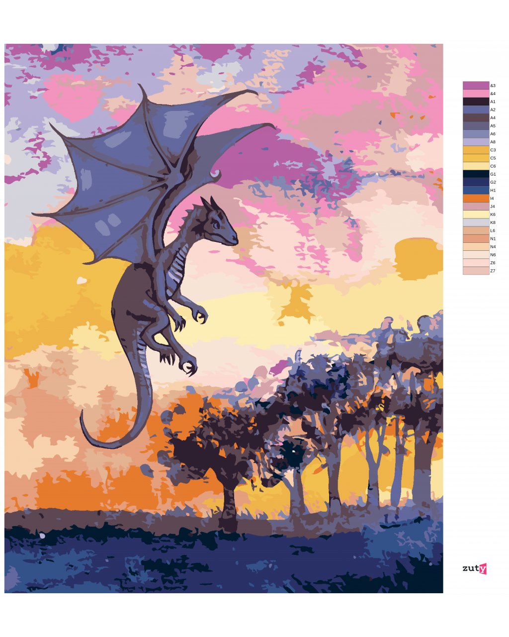 Maľovanie podľa čísel - FIALOVÝ DRAK A ZÁPAD SLNKA