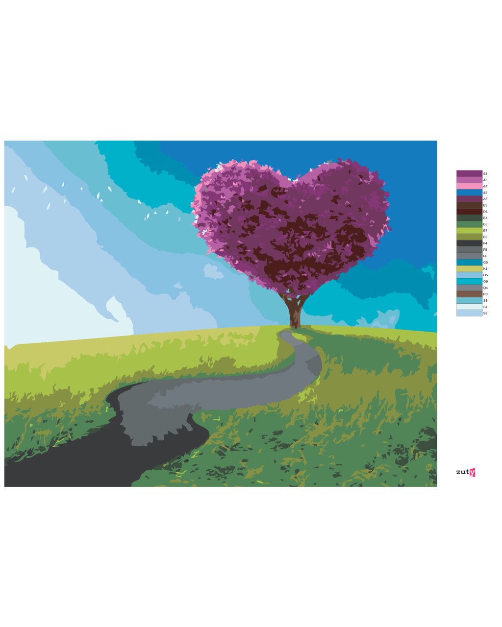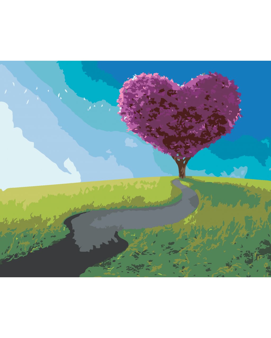 Maľovanie podľa čísel - FIALOVÝ STROM V TVARE SRDCA
