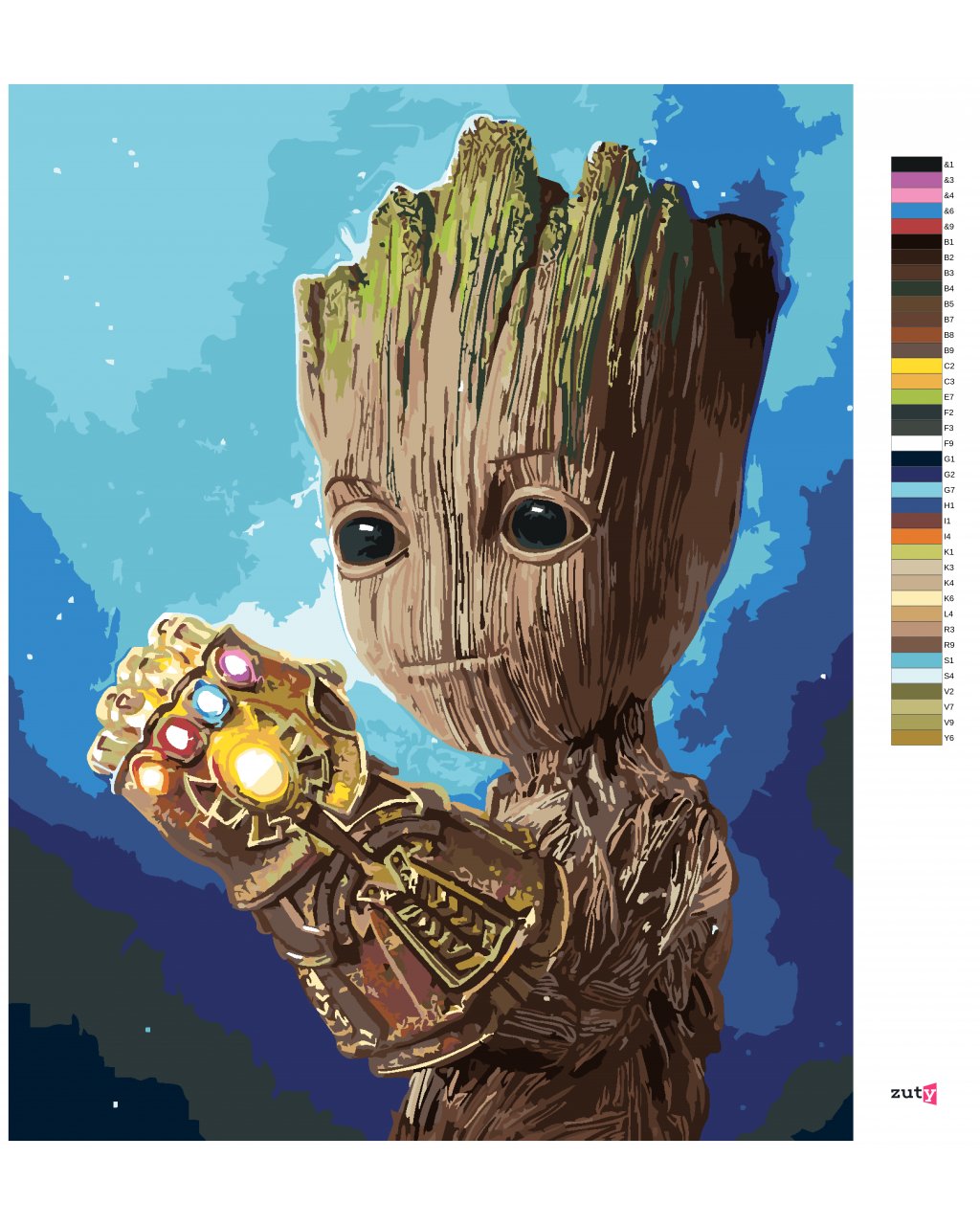 Maľovanie podľa čísel - GROOT S RUKAVICOU NEKONEČNA