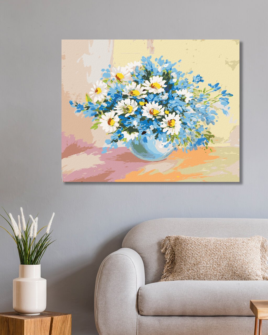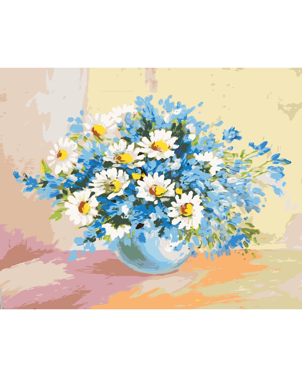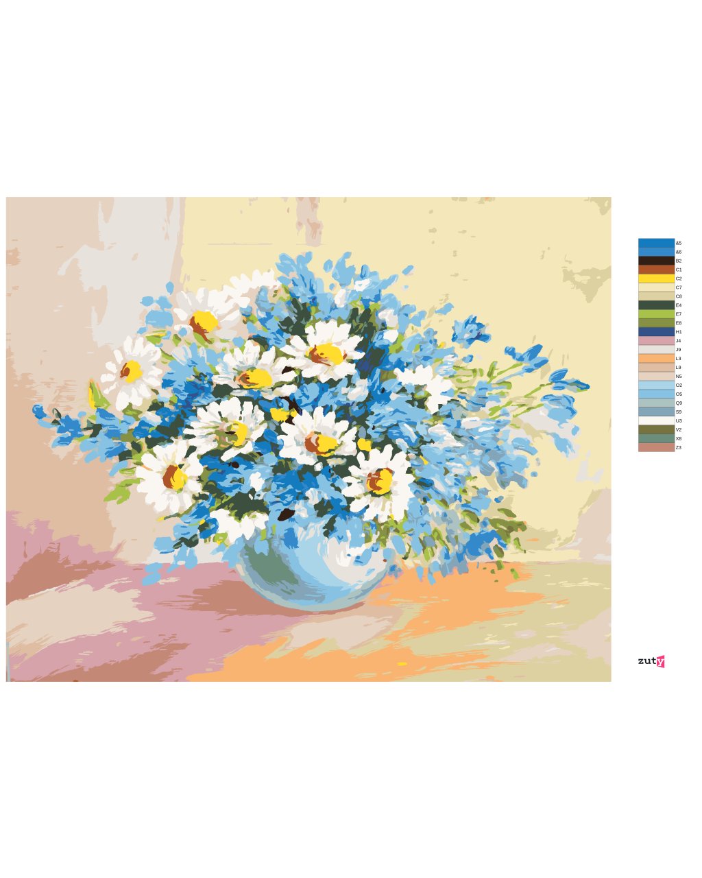 Maľovanie podľa čísel - HARMANČEK A MODRÉ KVETY