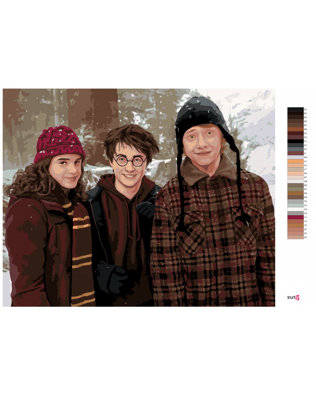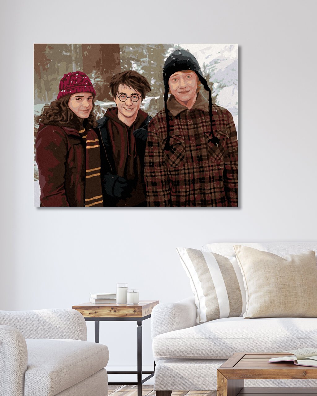 Maľovanie podľa čísel - HARRY POTTER, HERMIONA A RON V ZASNEŽENEJ KRAJINE