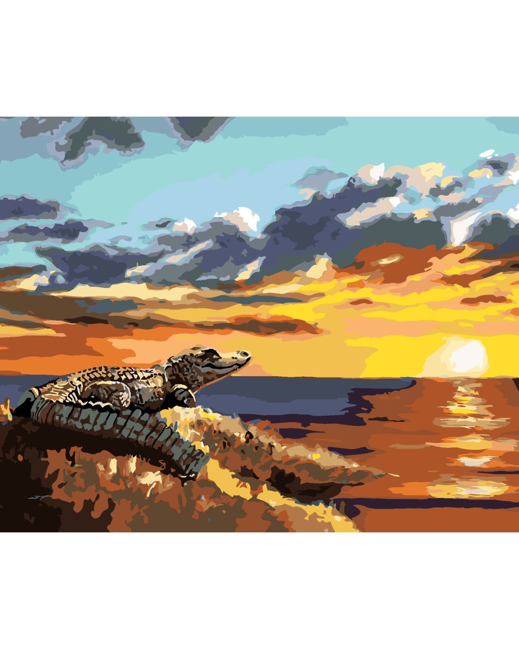 Maľovanie podľa čísel - HĽADIACI ALIGÁTOR A ZÁPAD SLNKA (D. RUSTY RUST)