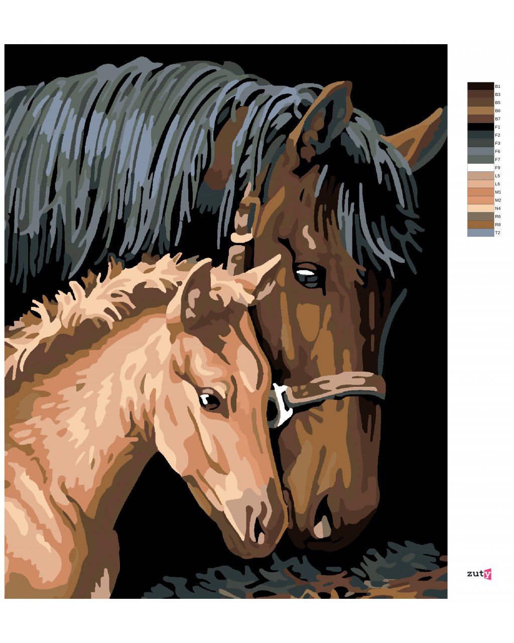Maľovanie podľa čísel - HNEDÁ KOBYLA SO ŽRIEBÄTKOM