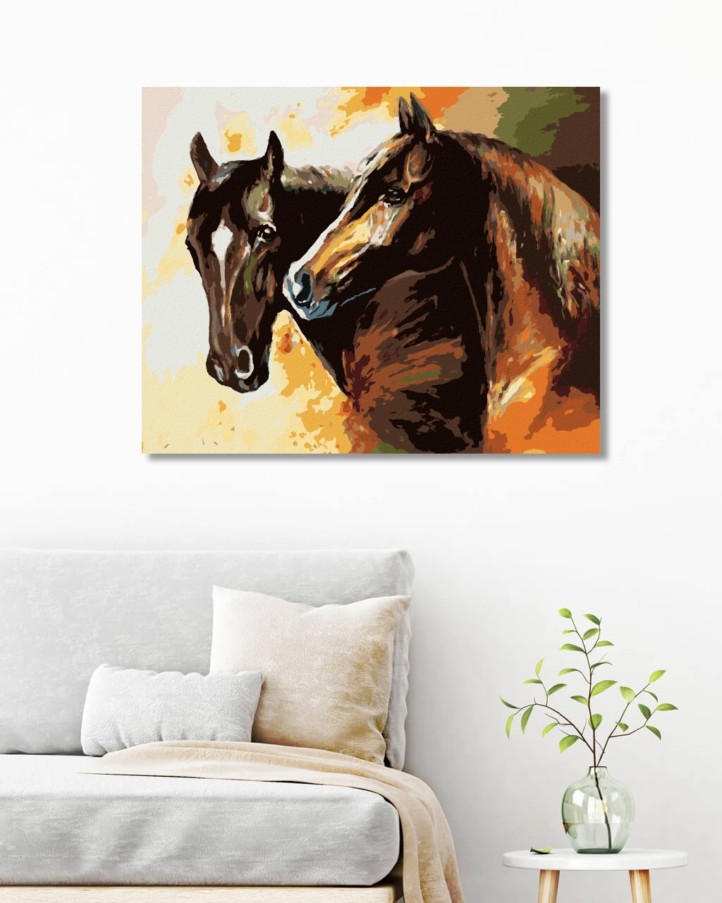 Maľovanie podľa čísel - HNEDÉ MAĽOVANÉ KONE