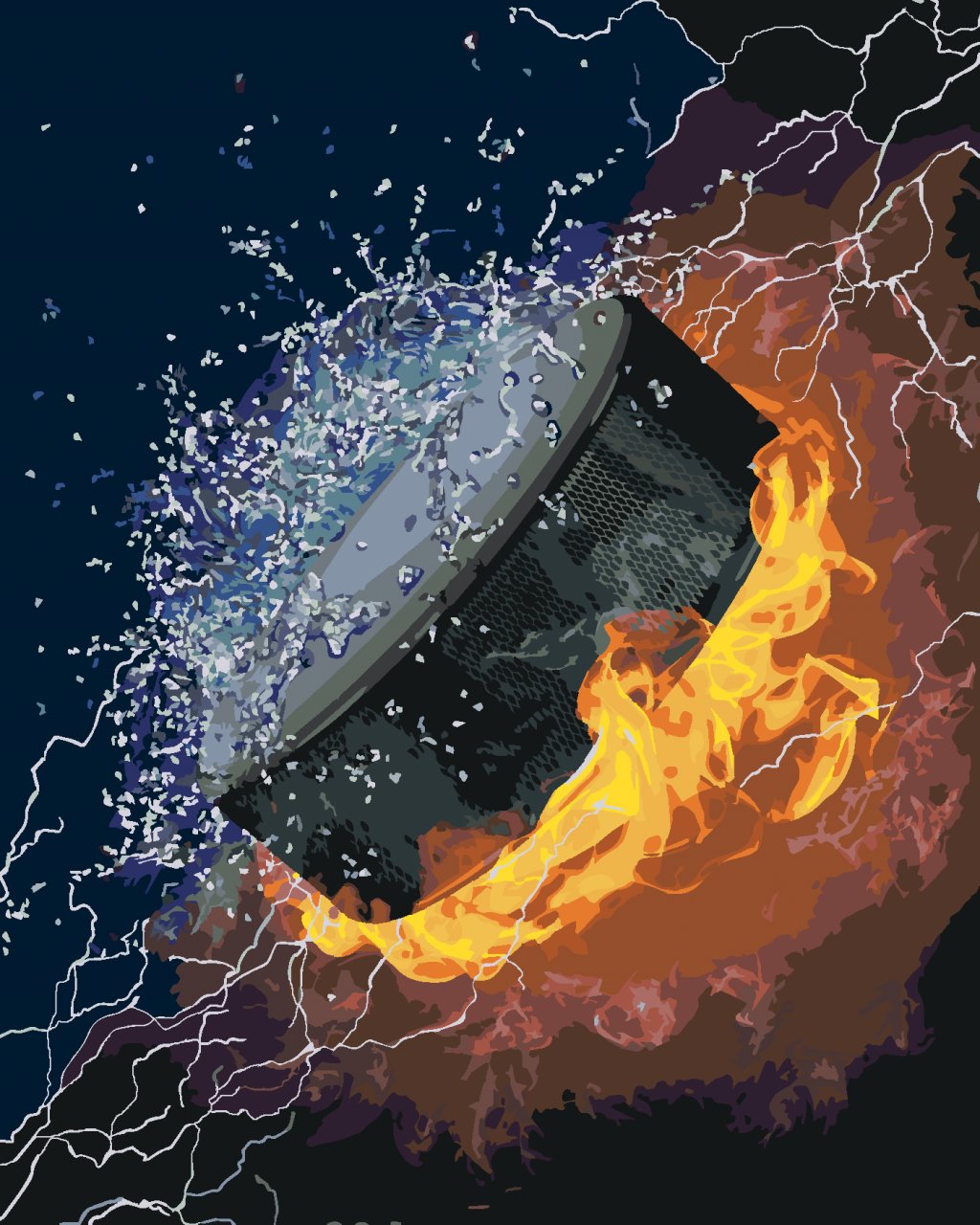Maľovanie podľa čísel - HOKEJOVÝ PUK VO VODE A OHNI