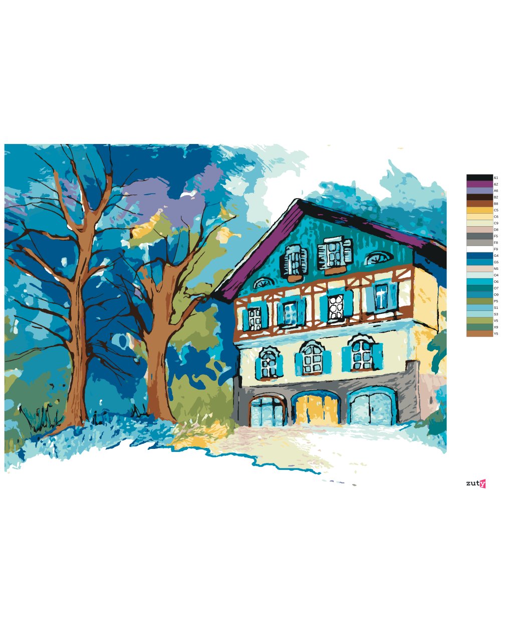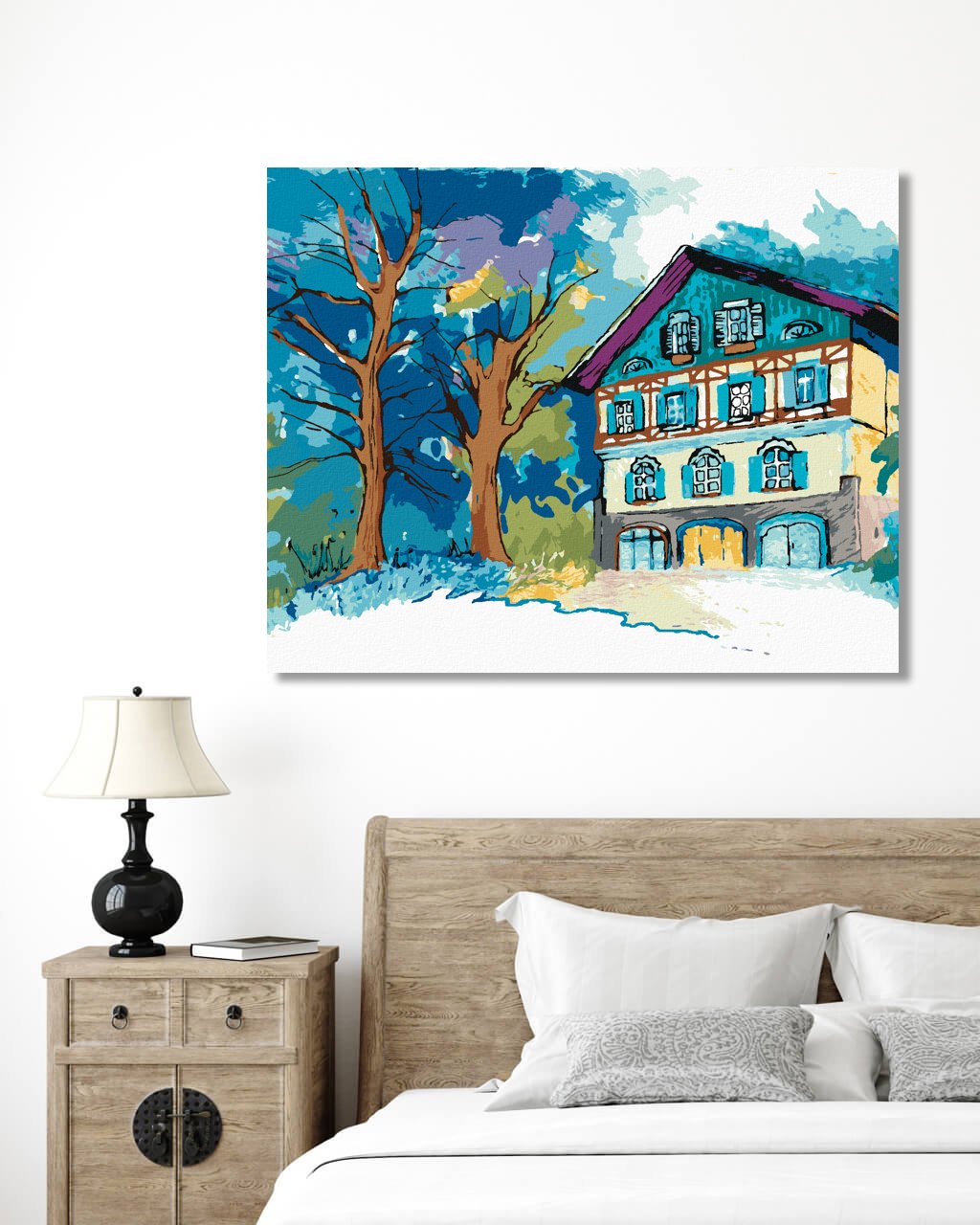 Maľovanie podľa čísel - HORSKÁ CHATA UPROSTRED LESA