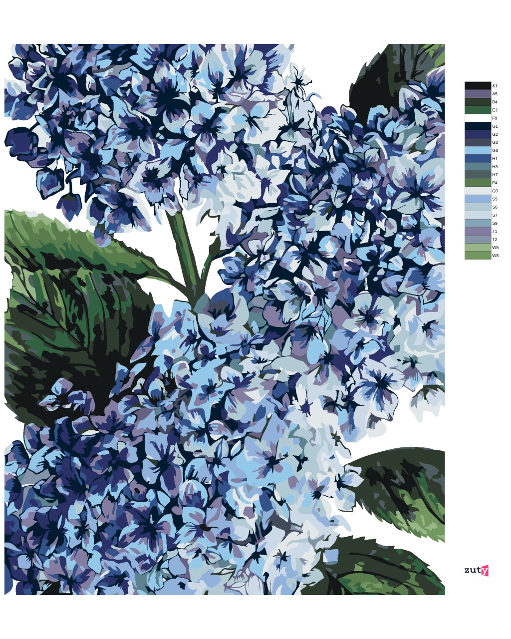 Maľovanie podľa čísel - HORTENZIA S MODRÝMI KVETMI (ALEXANDRIA GILBERT)