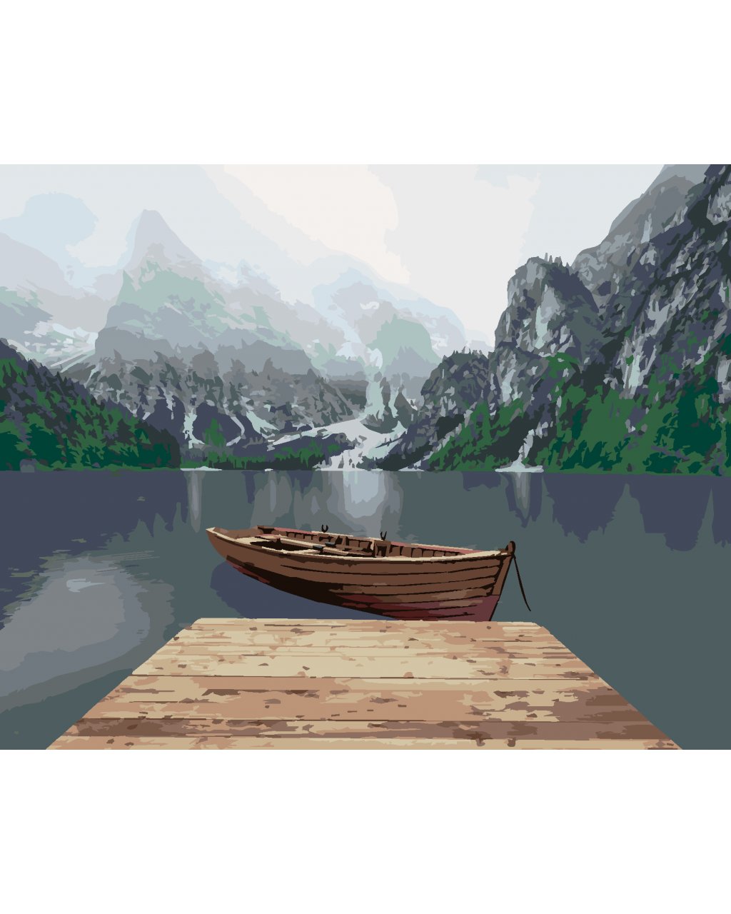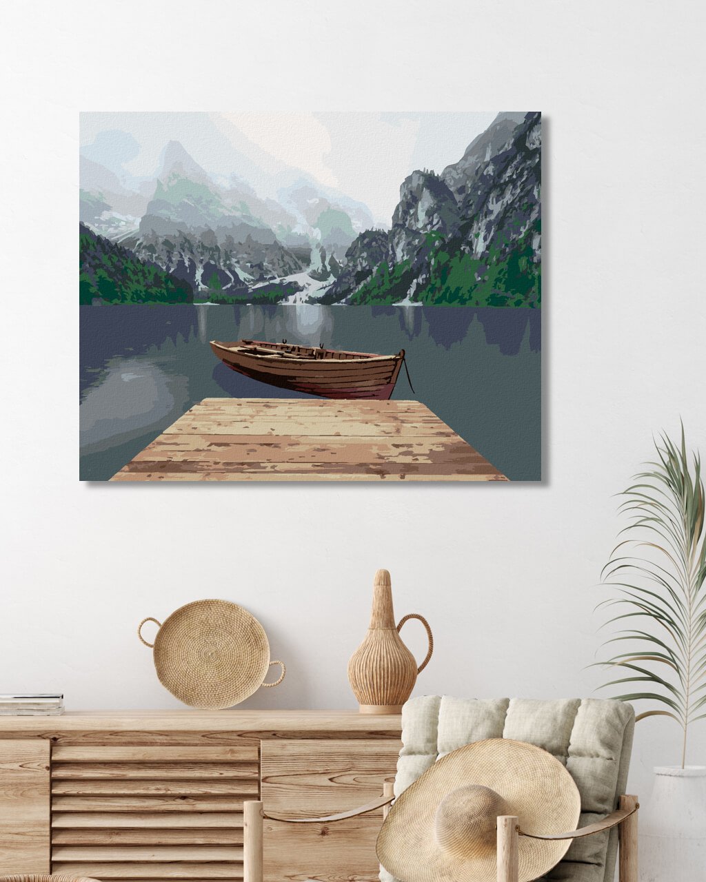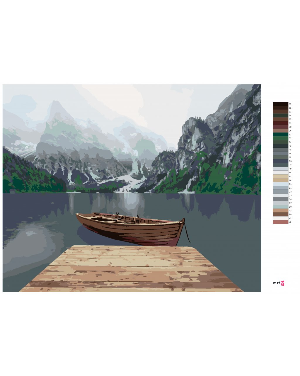 Maľovanie podľa čísel - HORY PRI JAZERE S LOĎKOU