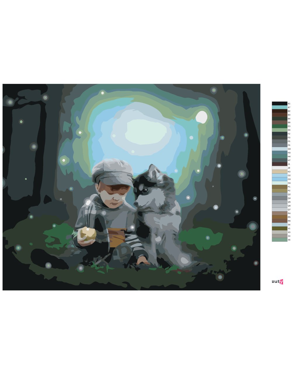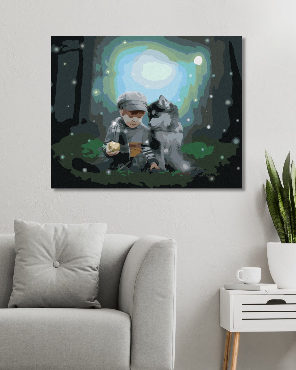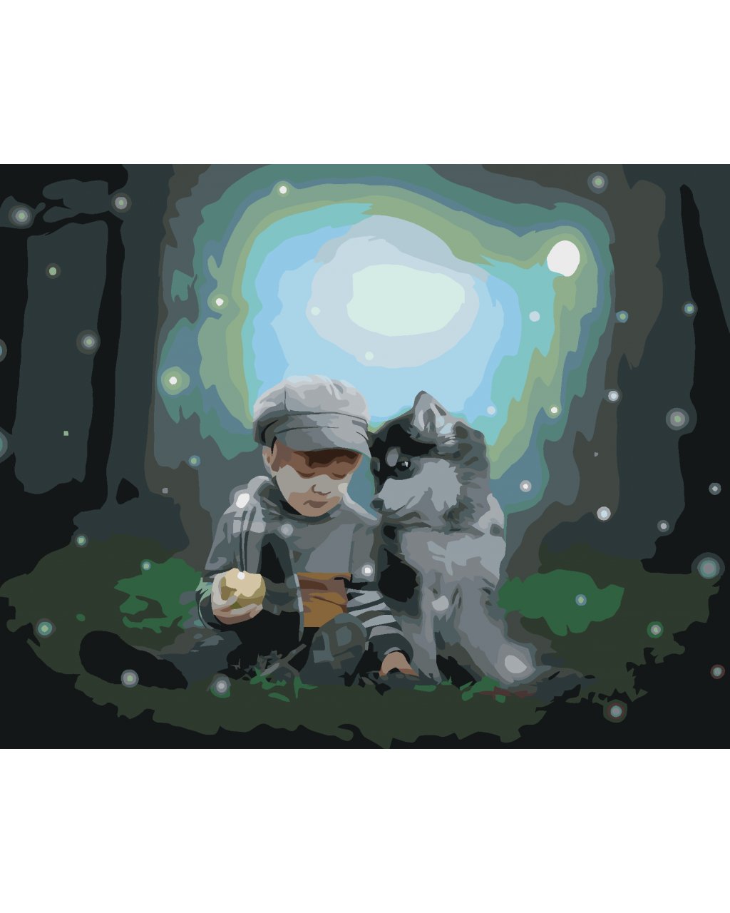 Maľovanie podľa čísel - HUSKY A CHLAPČEK V LESE