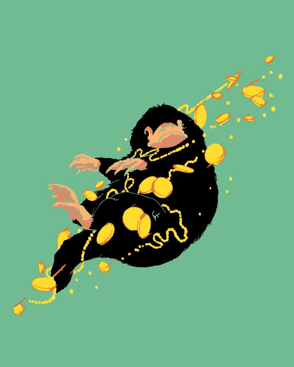 Maľovanie podľa čísel - ILUSTRÁCIA ŇUCHÁČ , MINCE A ZLATÉ RETIAZKY (FANTASTICKÉ ZVIERATÁ)