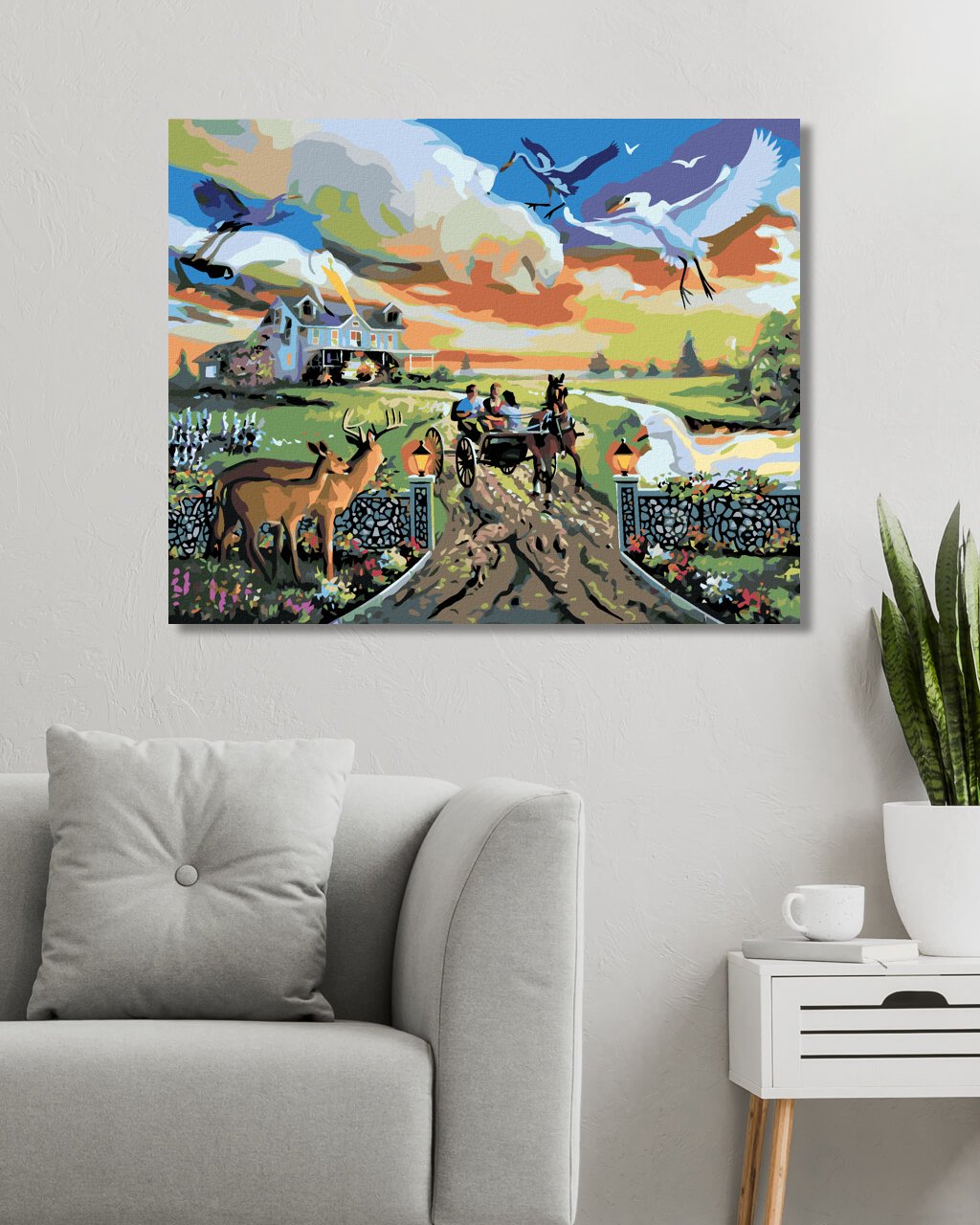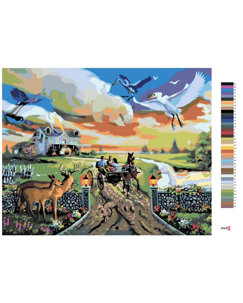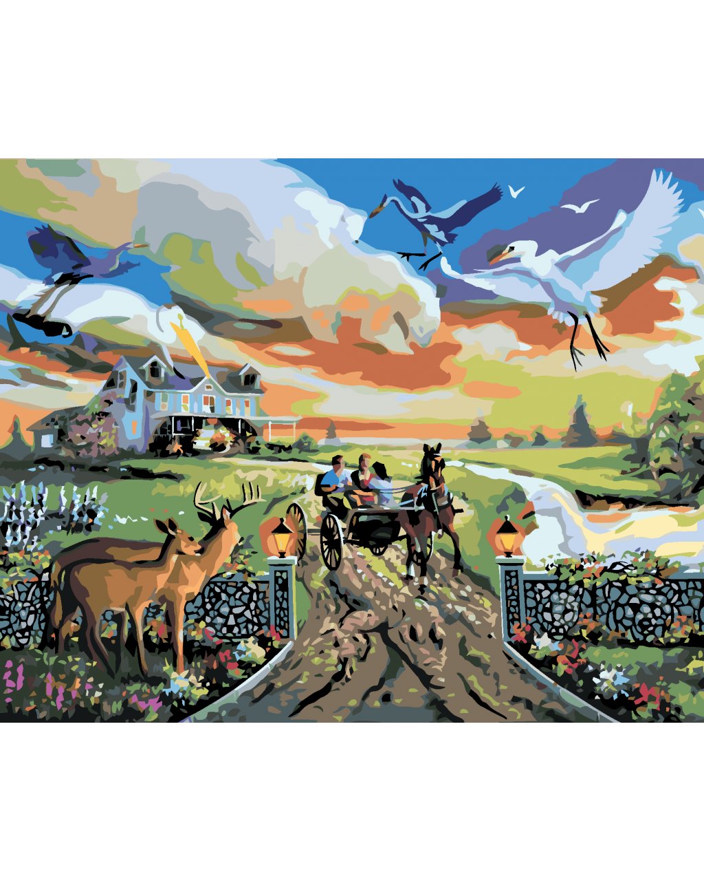 Maľovanie podľa čísel - ILÚZIA ZVIERATÁ A BRYČKA ODCHÁDZAJÚCA OD DOMU (D. RUSTY RUST)