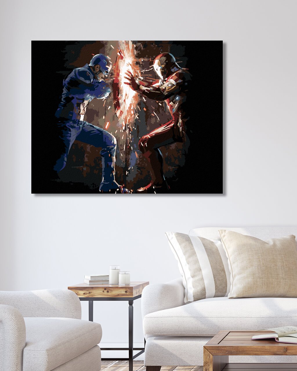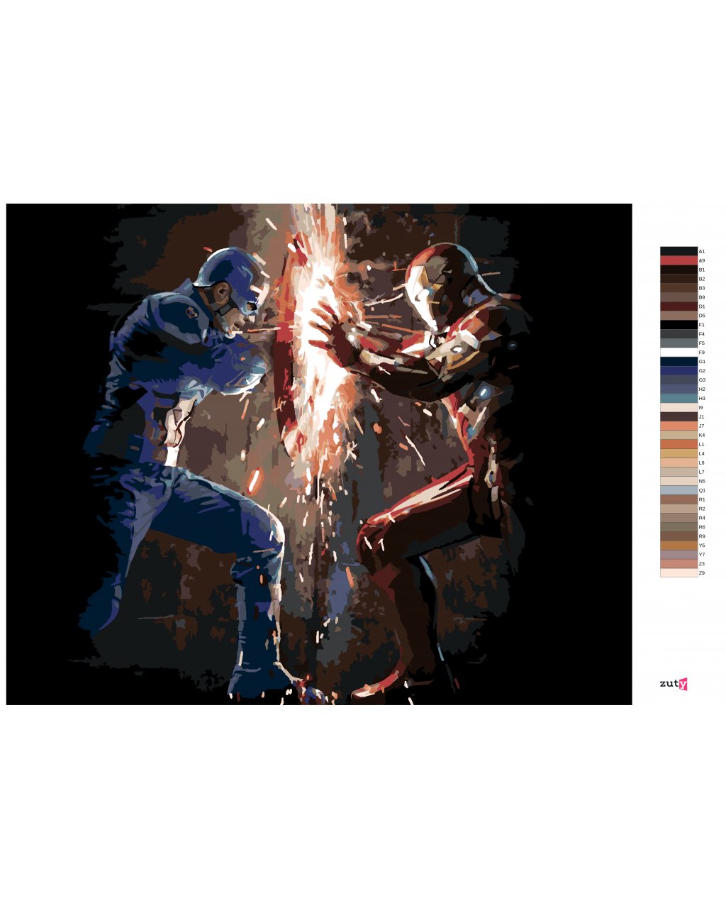 Maľovanie podľa čísel - IRON MAN VS KAPITÁN AMERIKA