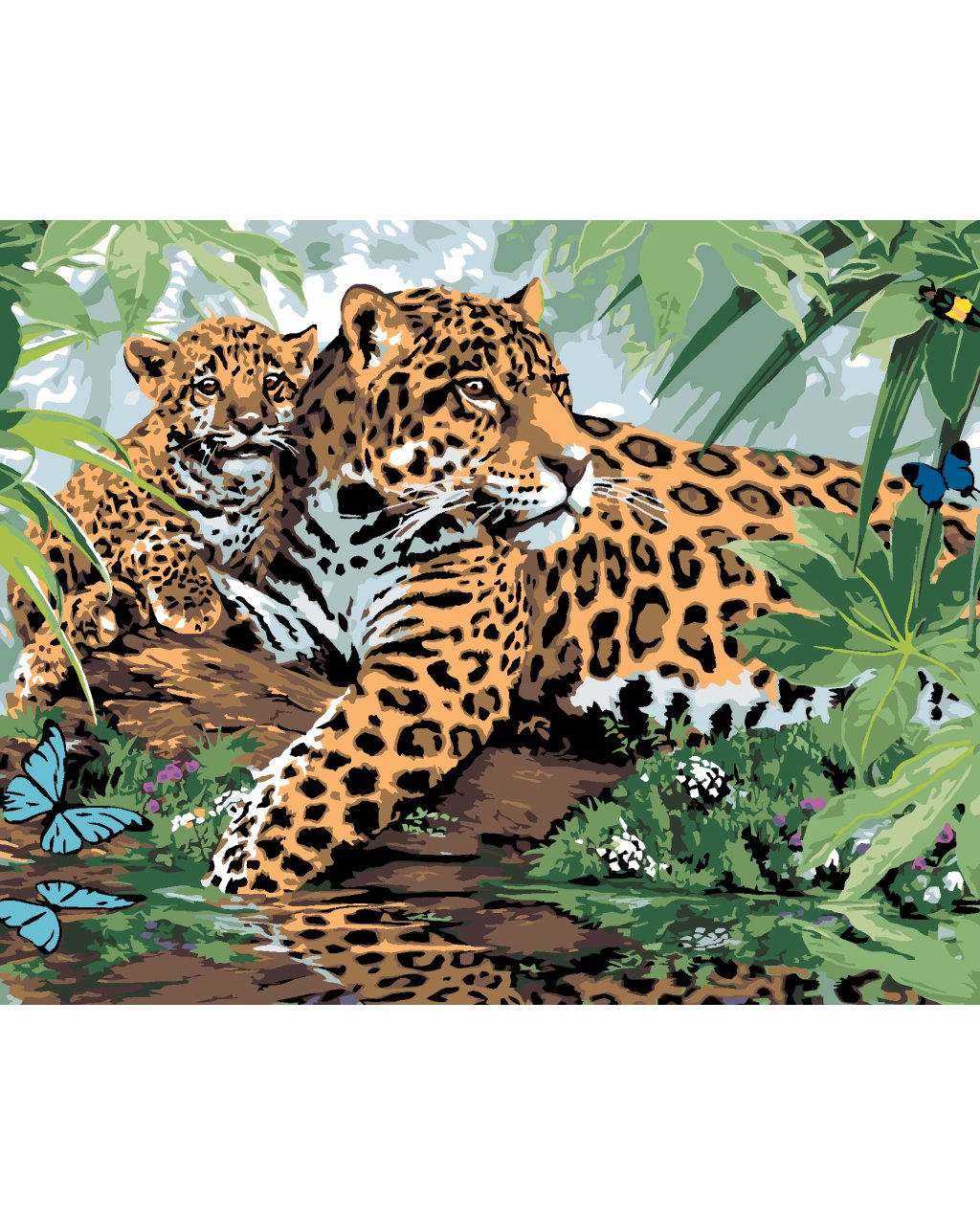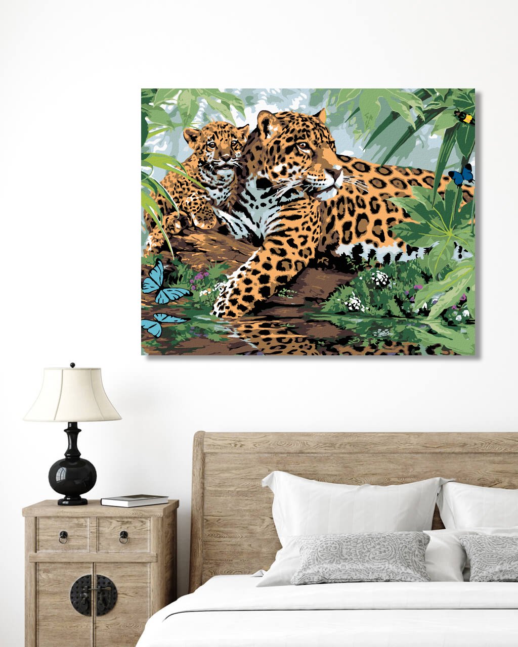 Maľovanie podľa čísel - JAGUÁR S MLÁĎAŤOM PRI VODE (HOWARD ROBINSON)