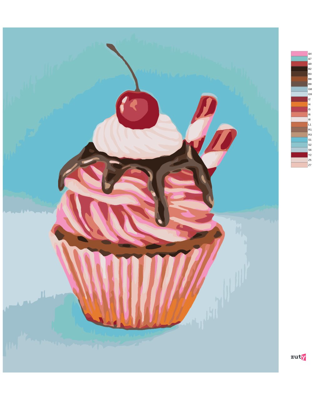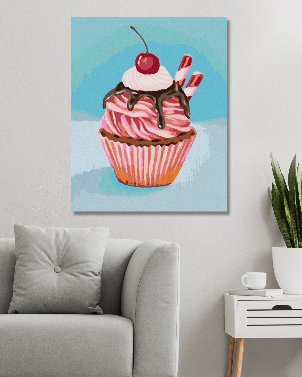 Maľovanie podľa čísel - JAHODOVÝ CUPCAKE S TYČINKOU ZO SLADKÉHO DRIEVKA (MYROSLAVA VOLOSCHUK)