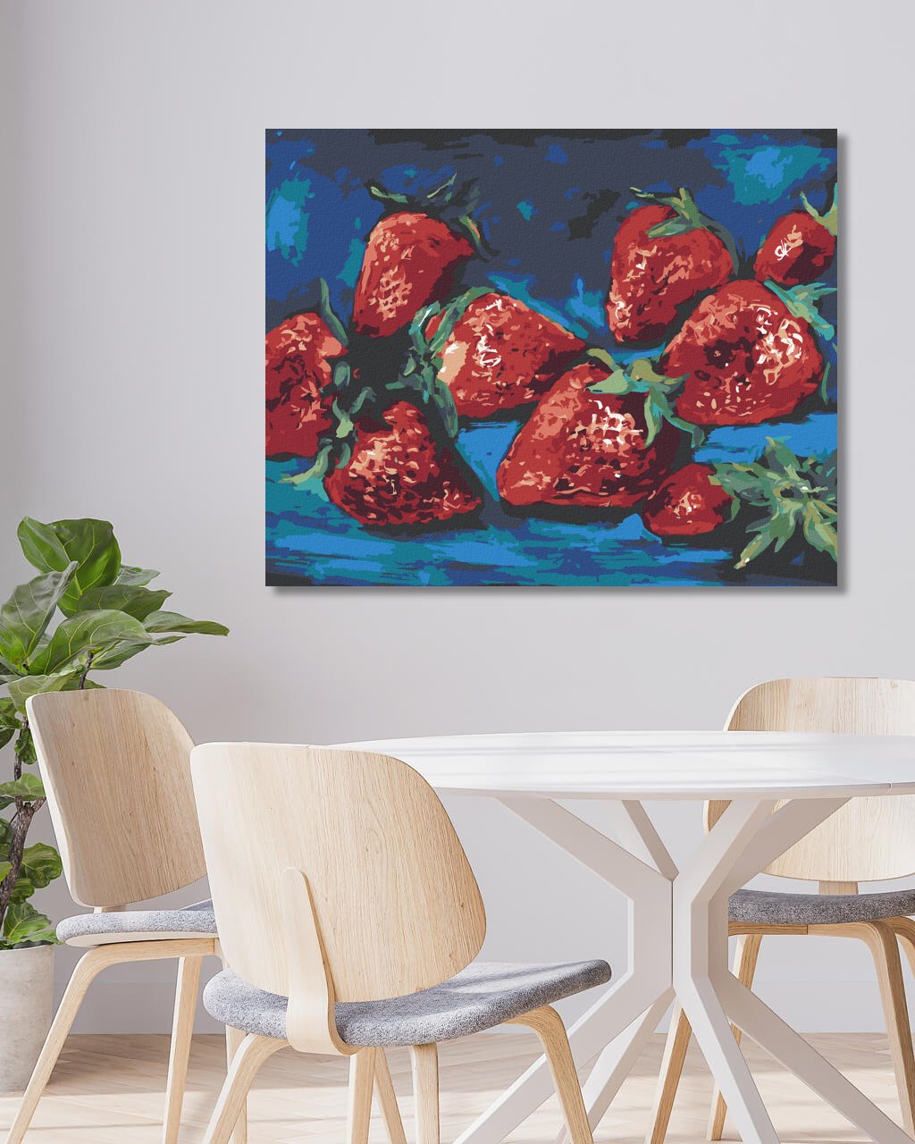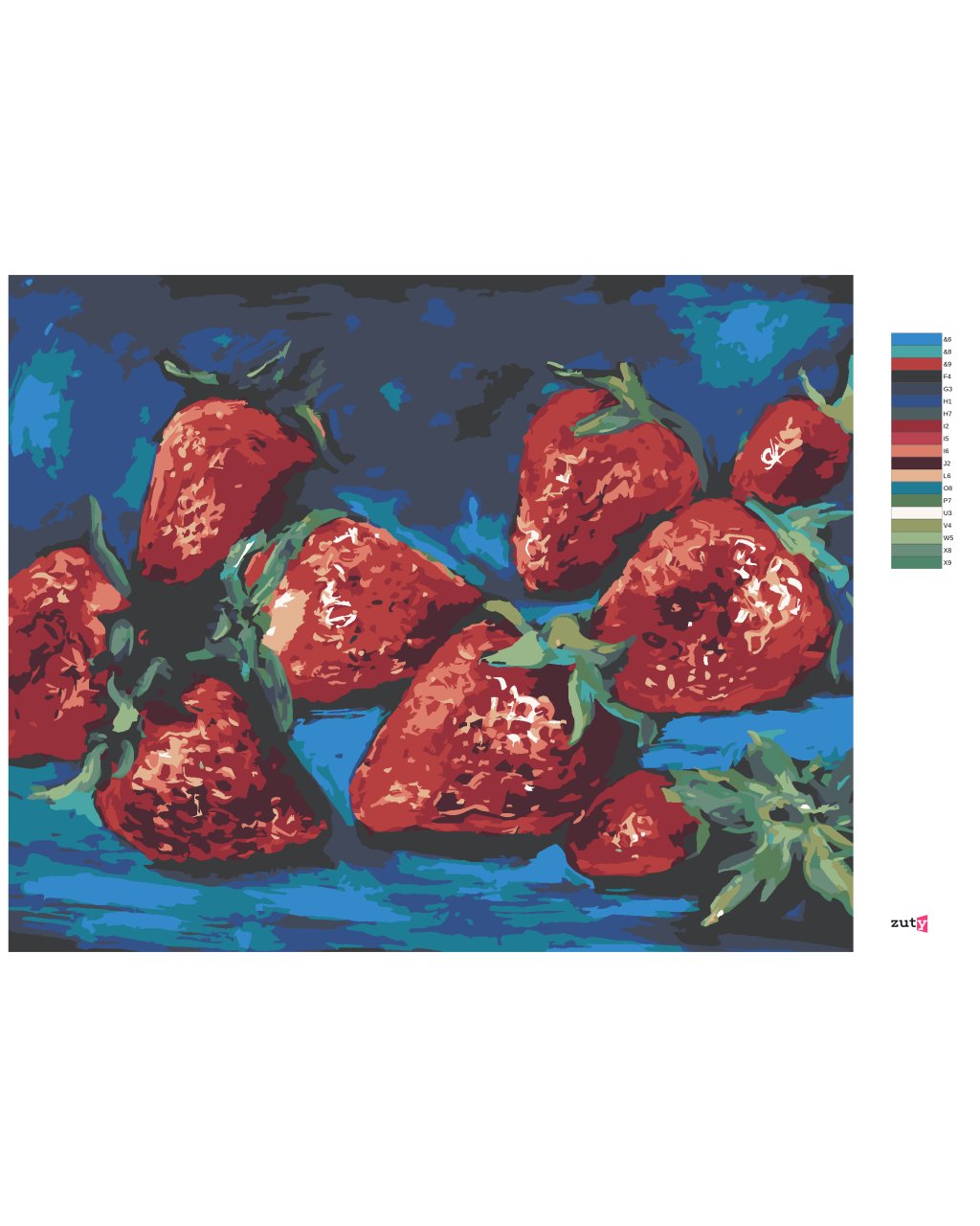 Maľovanie podľa čísel - JAHODY NA MODROM POZADÍ