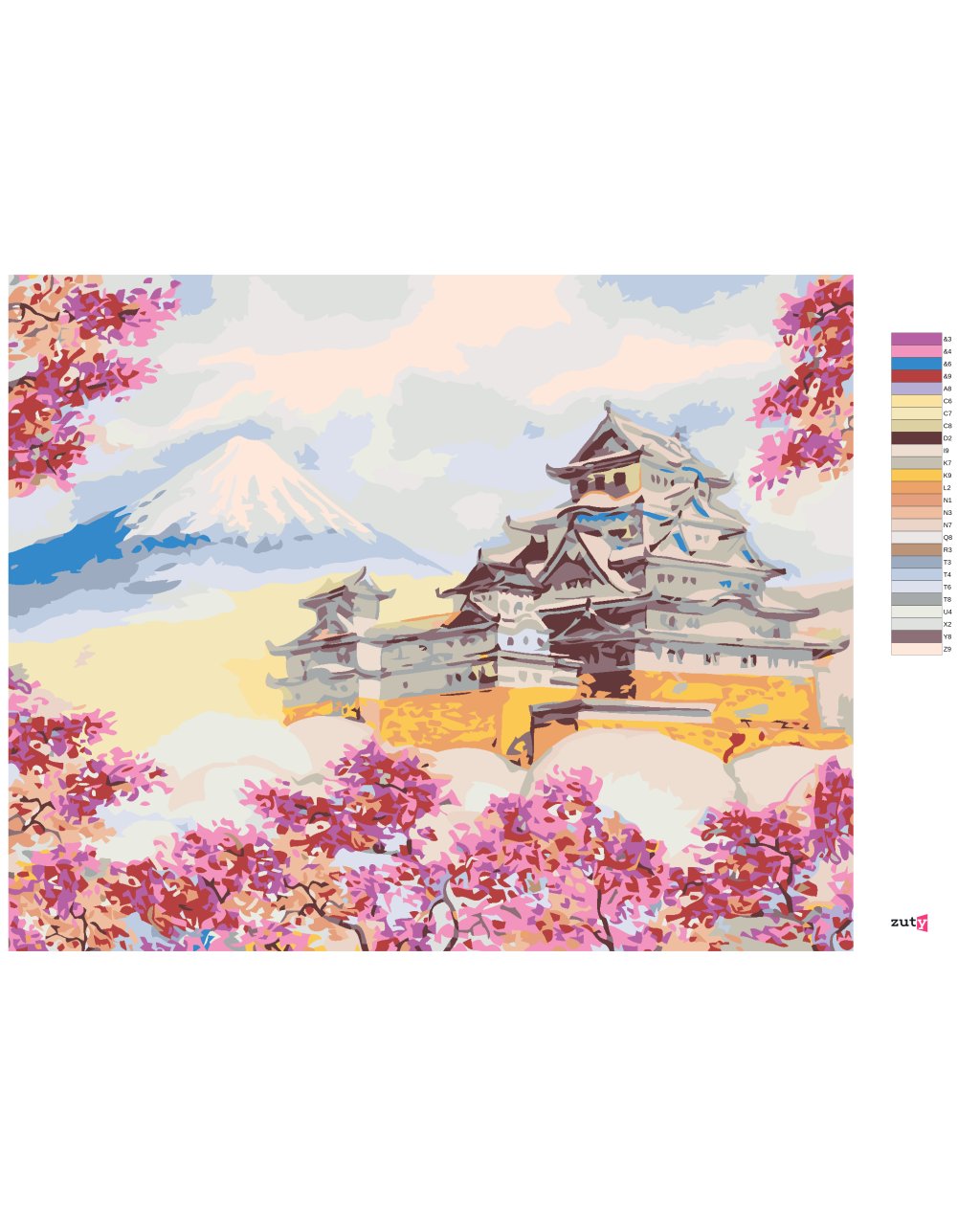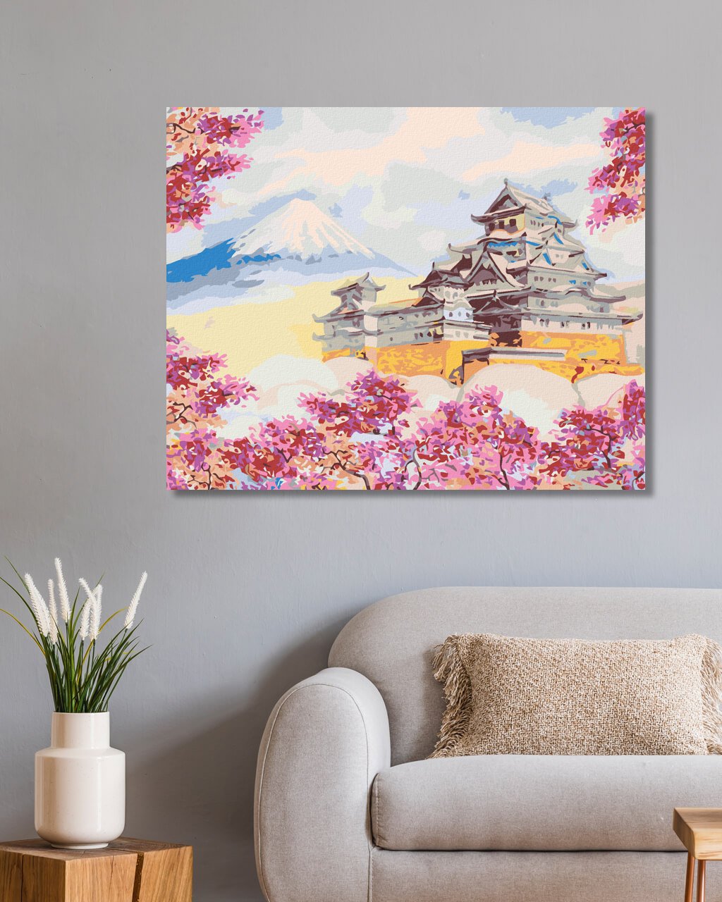 Maľovanie podľa čísel - JAPONSKÝ CHRÁM OBKLOPENÝ KVETMI