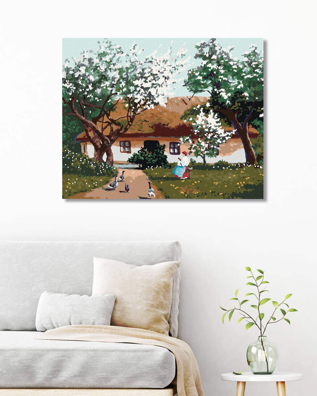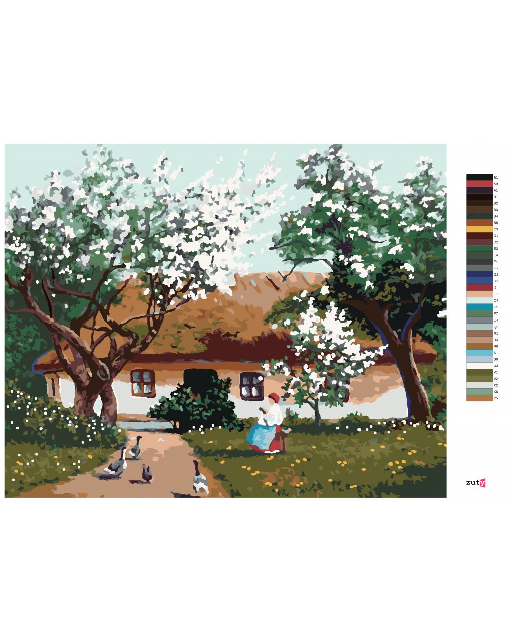 Maľovanie podľa čísel - JARNÉ RÁNO NA DEDINE