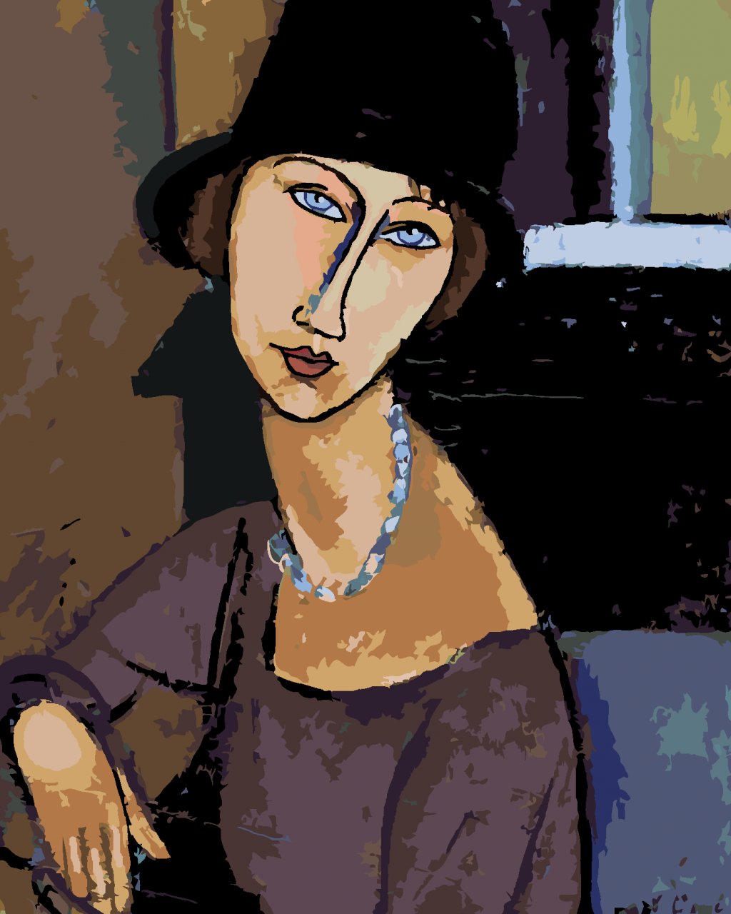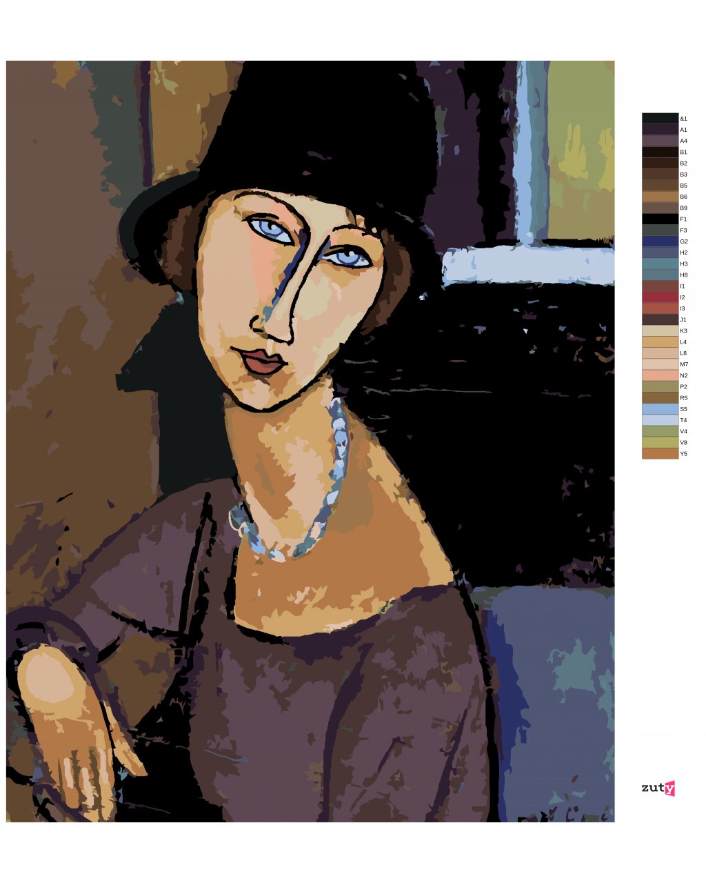 Maľovanie podľa čísel - JEANNE HÉBUTERNE S KLOBÚKOM A NÁHRDELNÍKOM (AMEDEO MODIGLIANI)