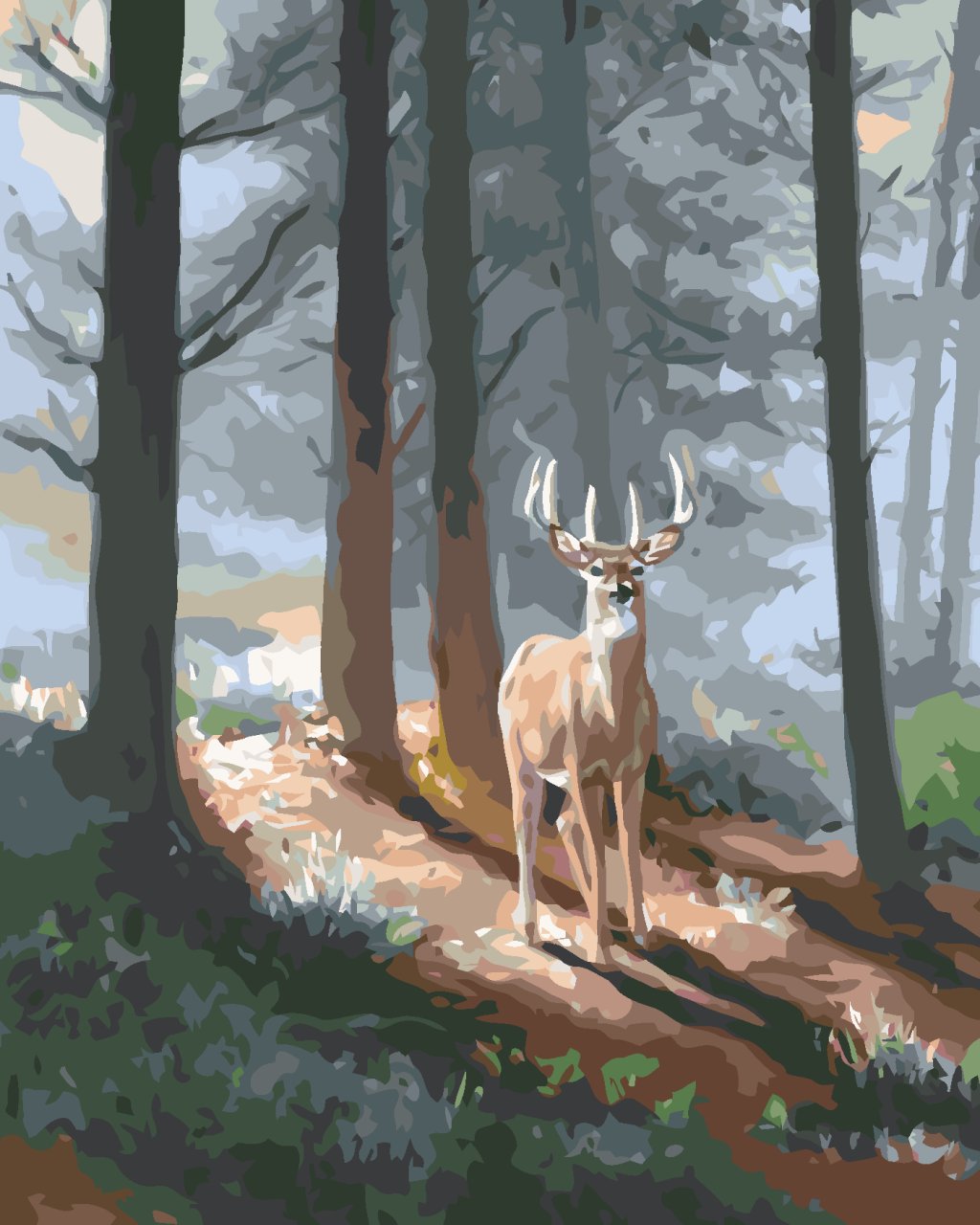Maľovanie podľa čísel - JELEŇ A IHLIČNATÝ LES (D. RUSTY RUST)