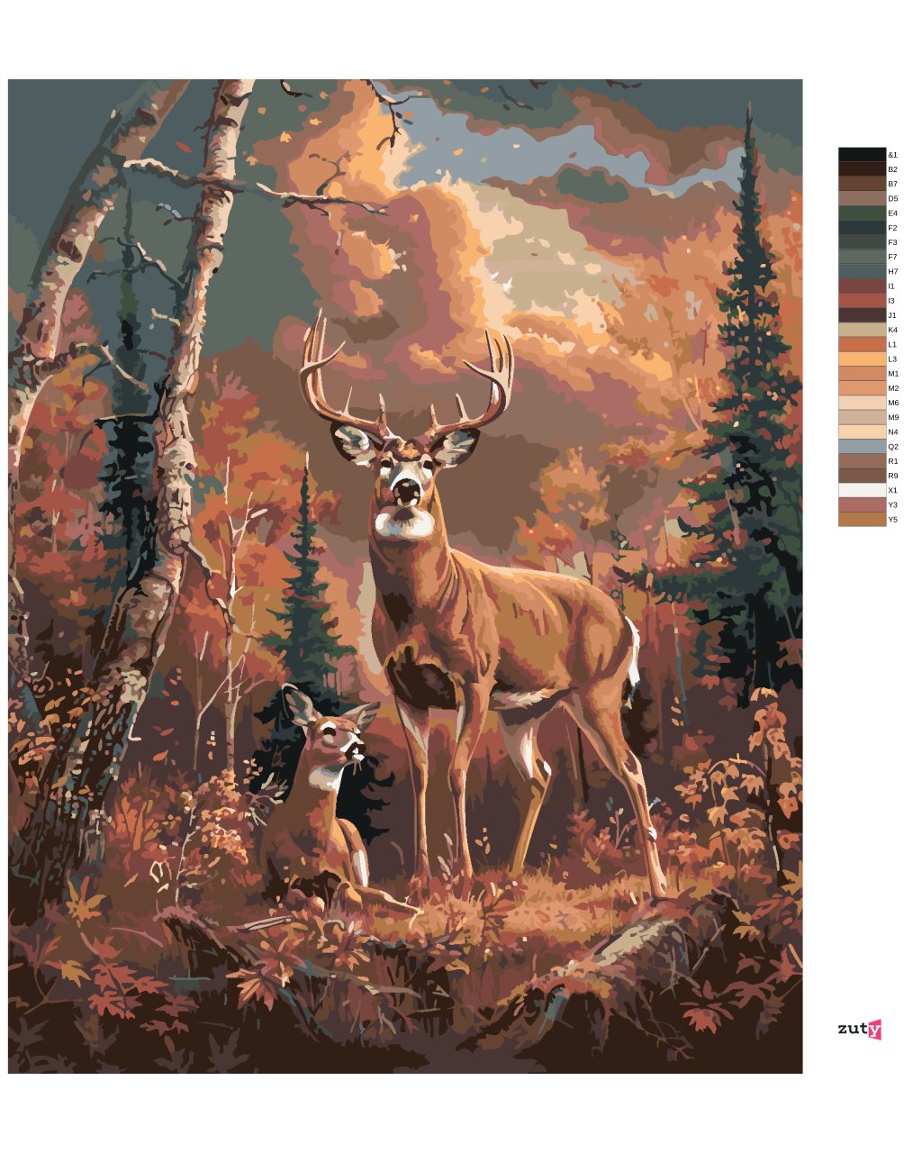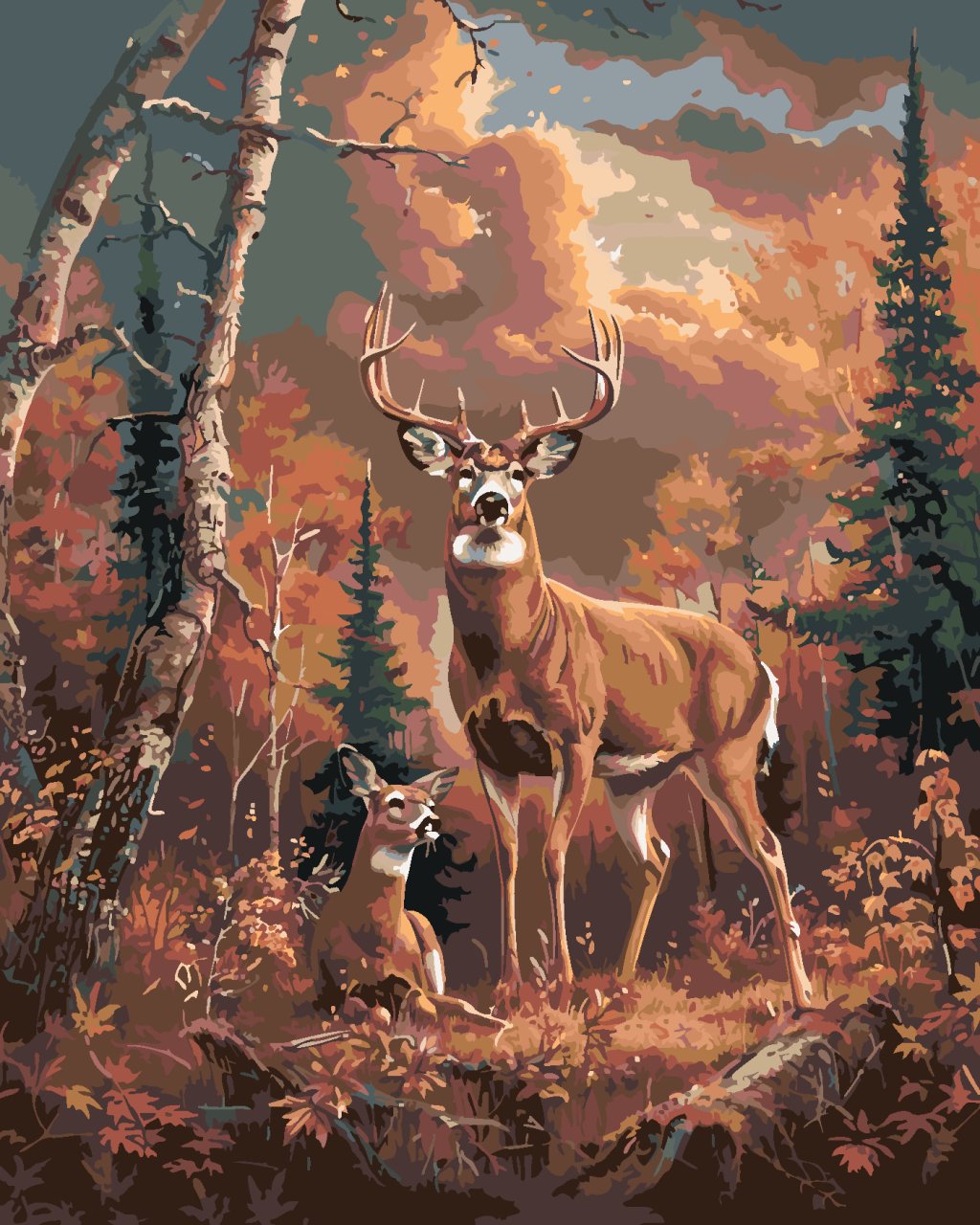 Maľovanie podľa čísel - JELEŇ A JEHO DRUŽKA V LESE