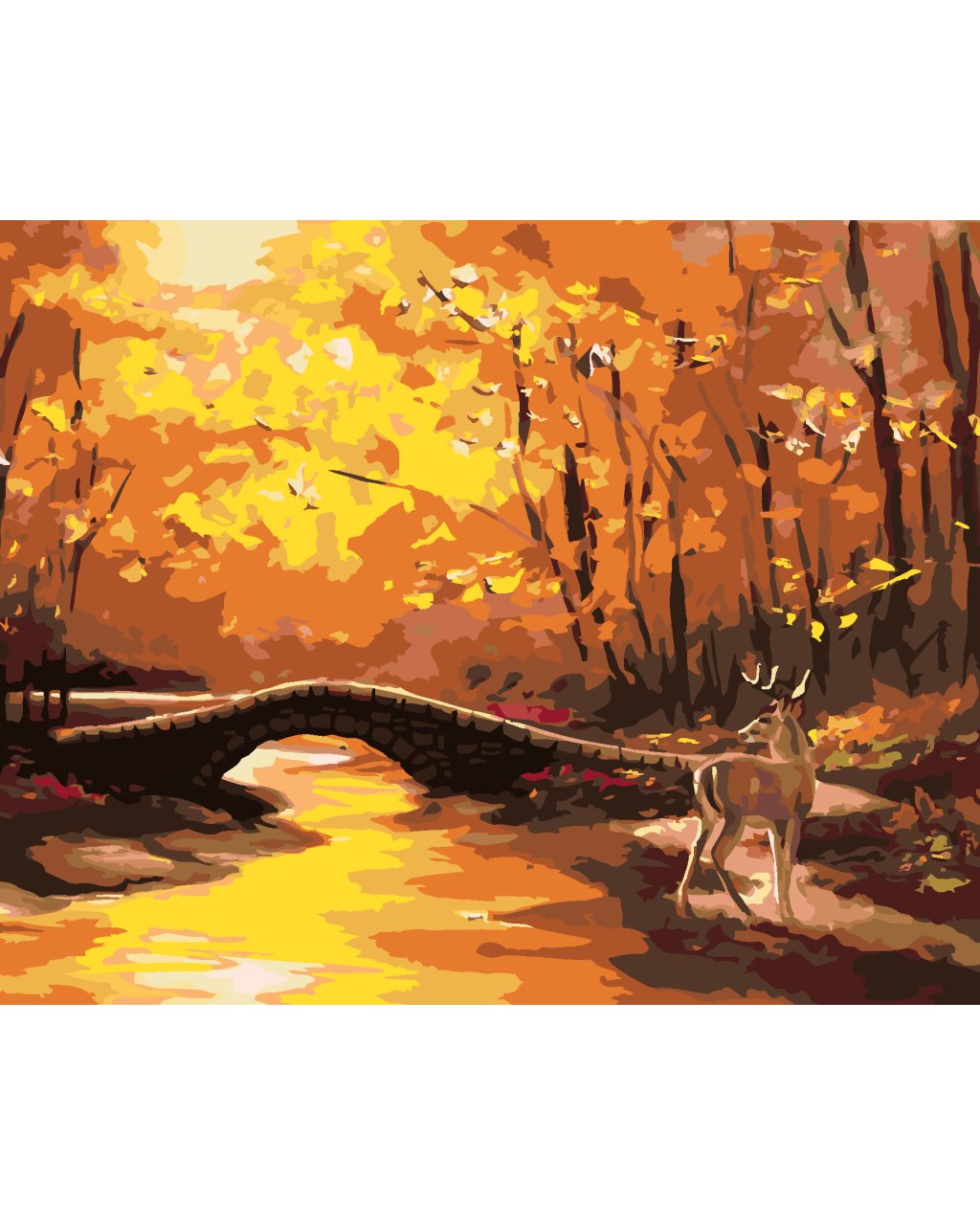 Maľovanie podľa čísel - JELEŇ A KAMENNÝ MOST NA JESEŇ (D. RUSTY RUST)