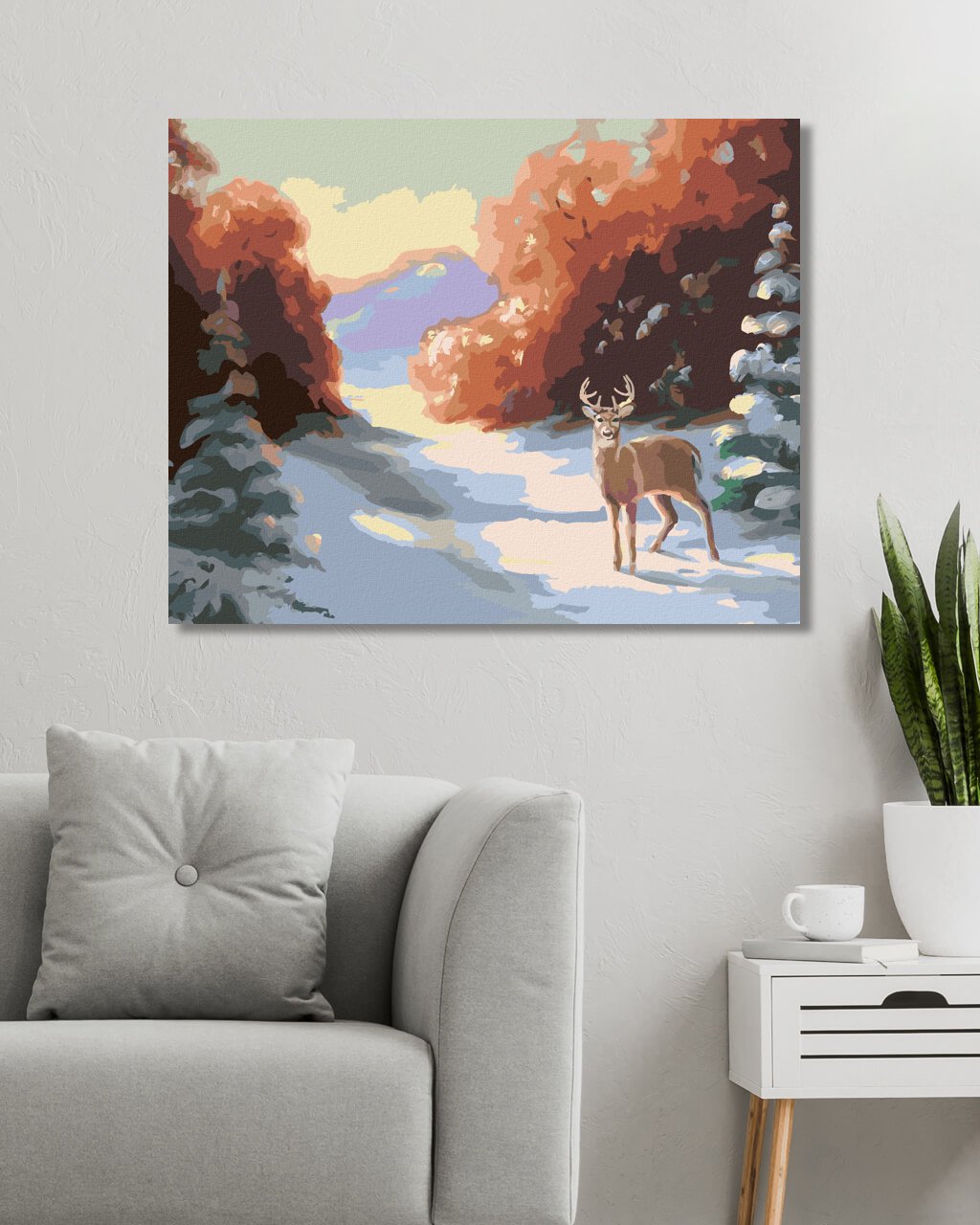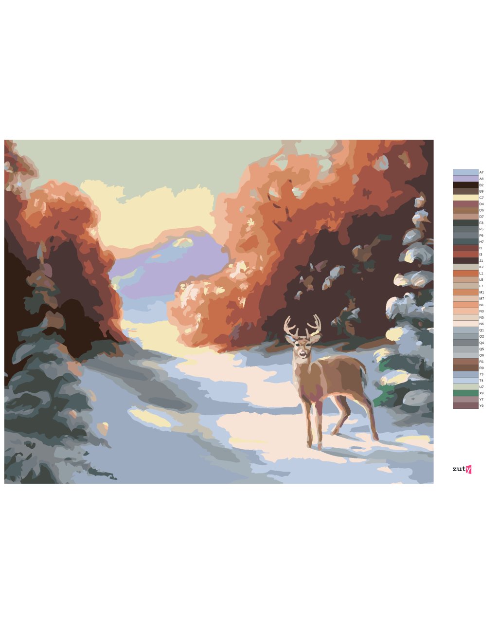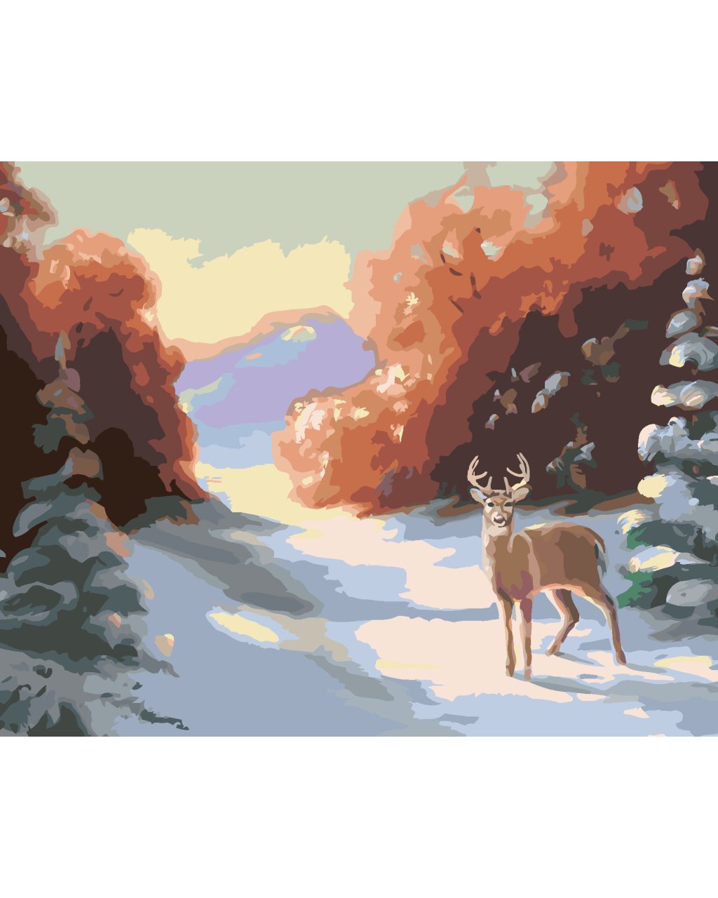 Maľovanie podľa čísel - JELEŇ A ZASNEŽENÉ SMREKY V LESE (D. RUSTY RUST)