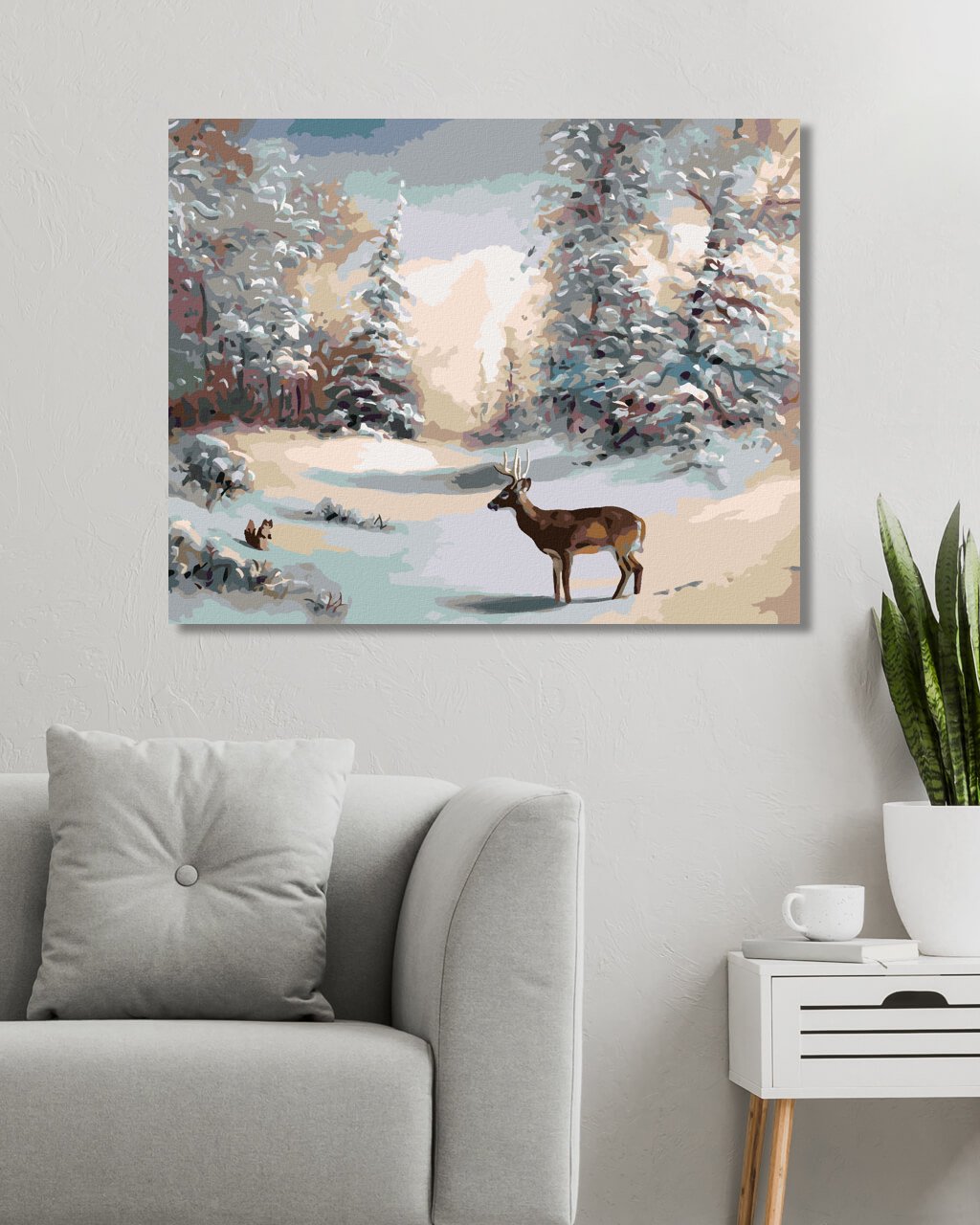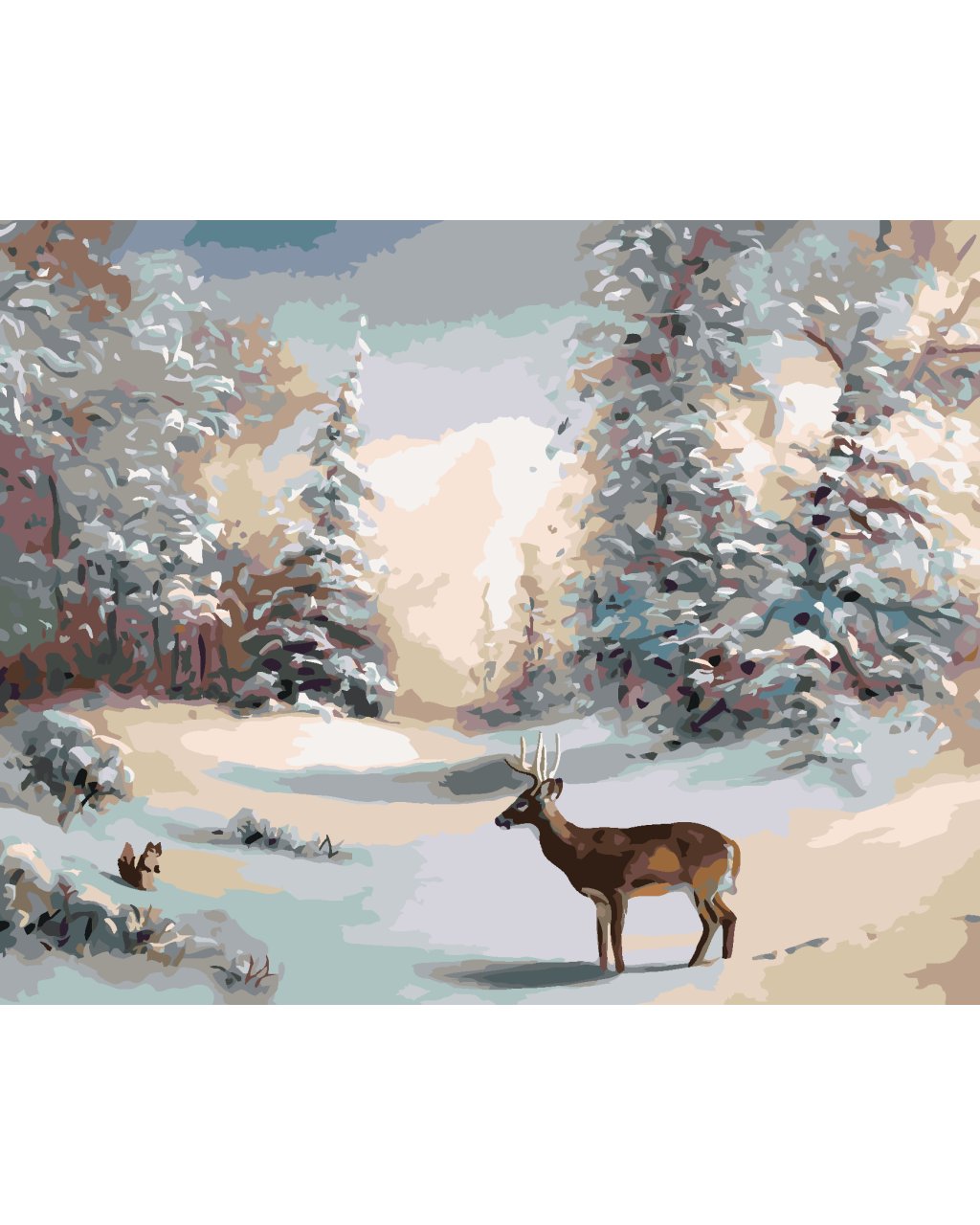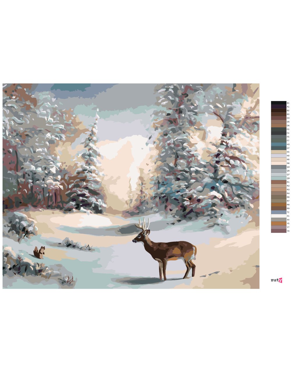Maľovanie podľa čísel - JELEŇ A ZIMNÝ LES (D. RUSTY RUST)