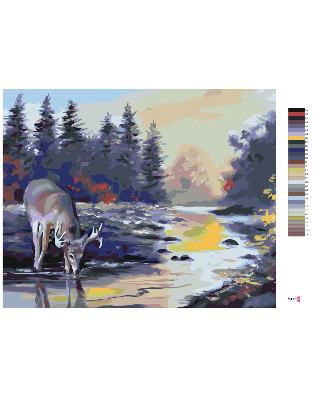 Maľovanie podľa čísel - JELEŇ PIJE Z POTOKA (D. RUSTY RUST)