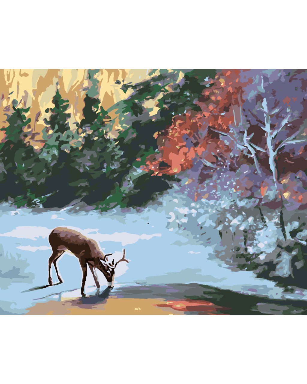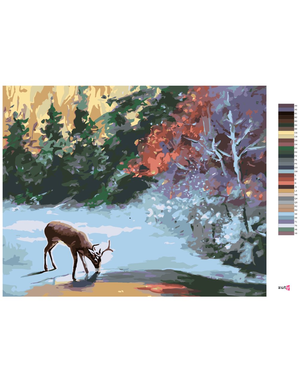 Maľovanie podľa čísel - JELEŇ PRI ZAMRZNUTOM POTOKU (D. RUSTY RUST)