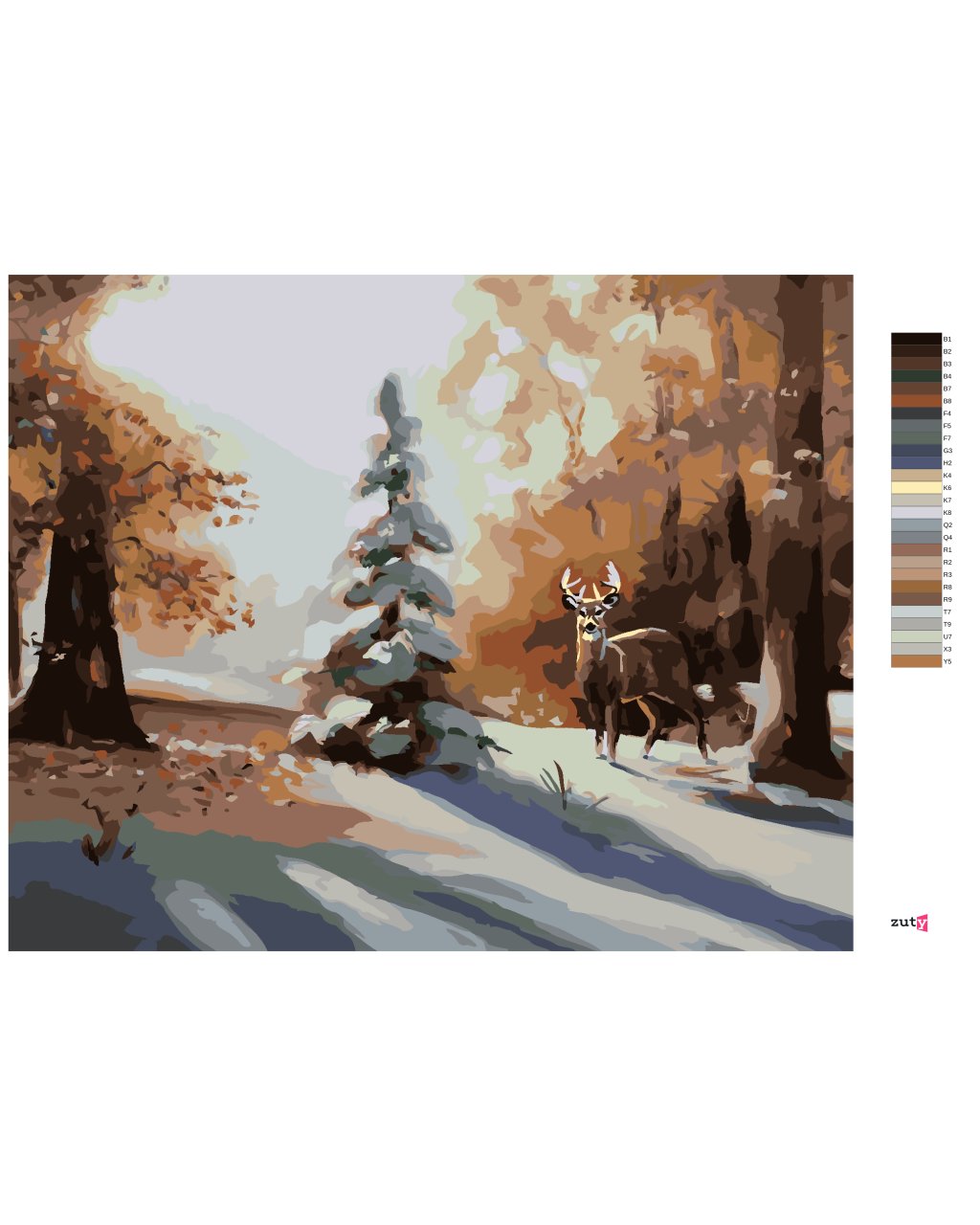 Maľovanie podľa čísel - JELEŇ PRI ZASNEŽENOM STROME (D. RUSTY RUST)