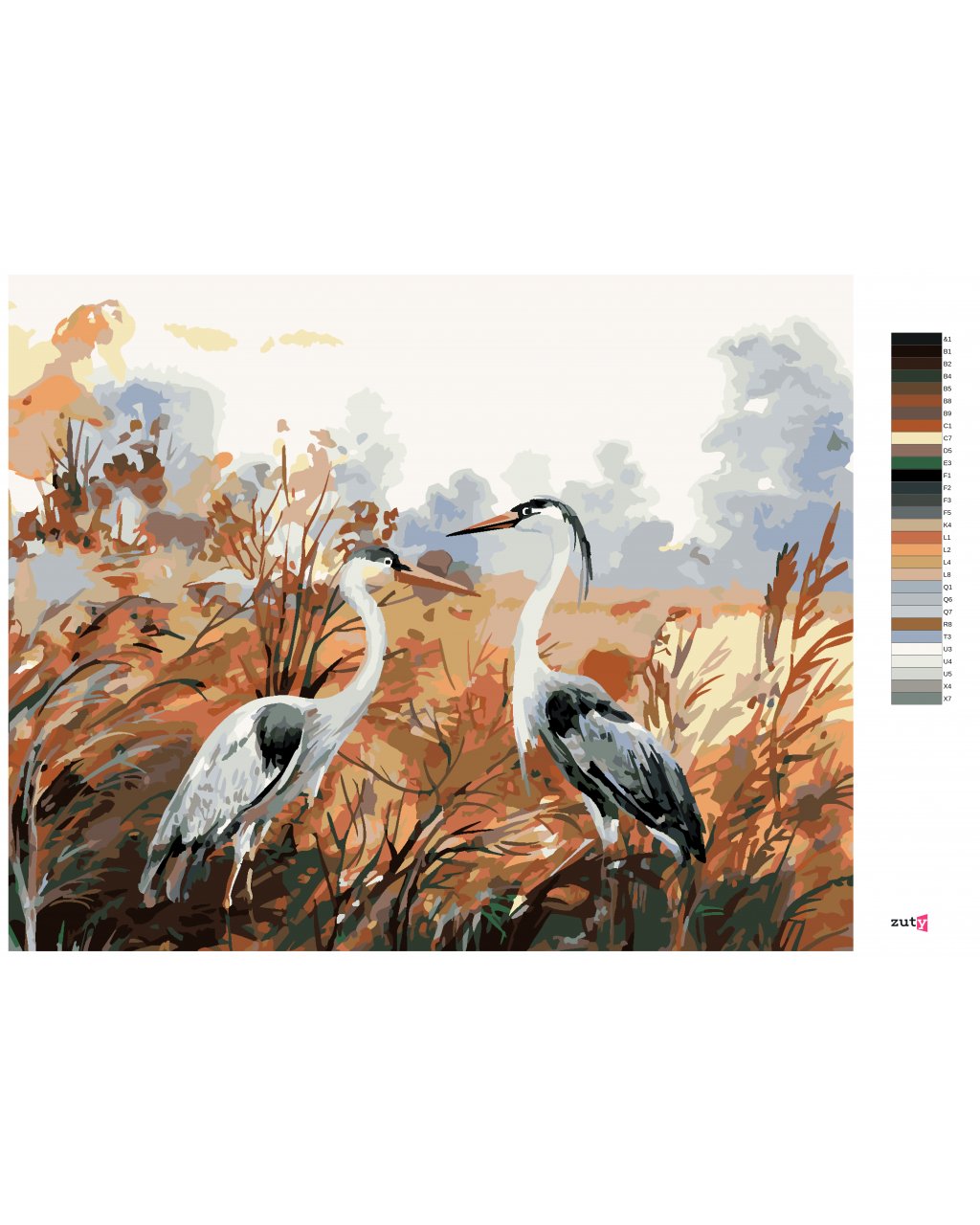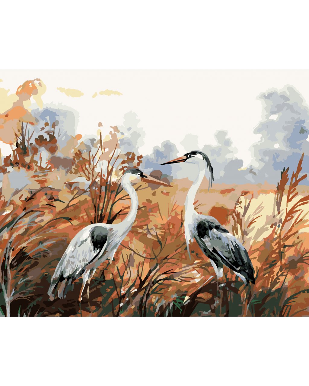 Maľovanie podľa čísel - JESENNÁ KRAJINA S ŽERIAVMI