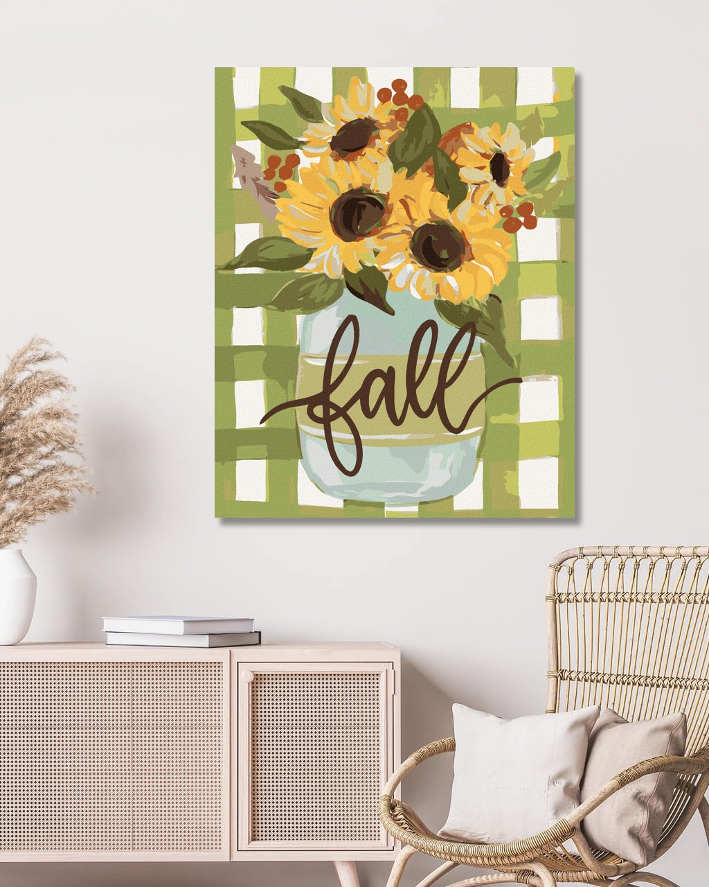 Maľovanie podľa čísel - JESENNÁ SLNEČNICA GINGHAM (HALEY BUSH)