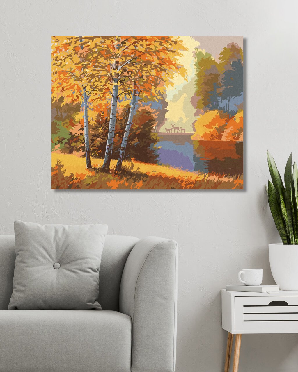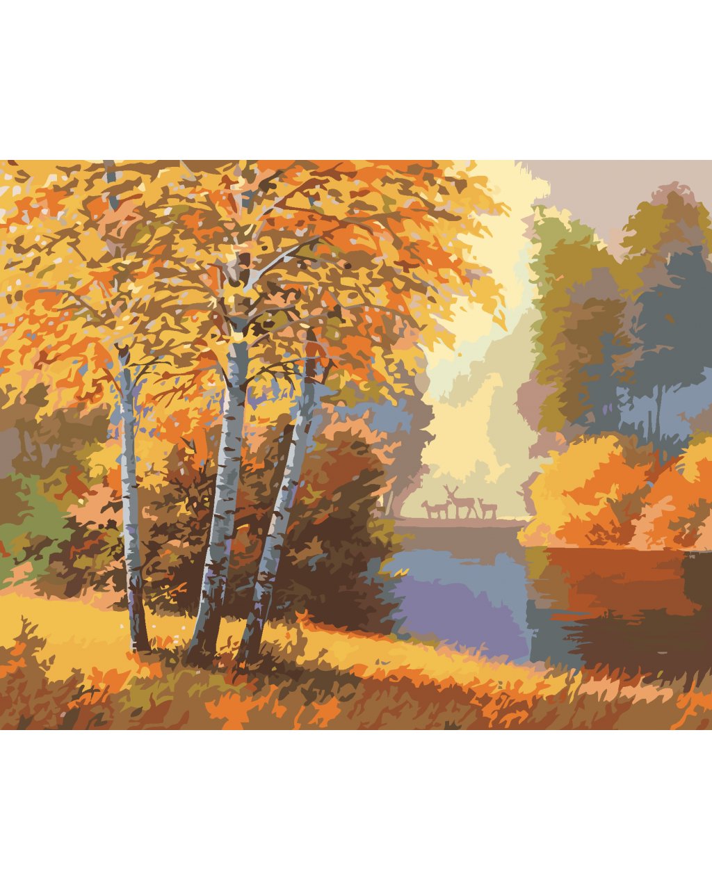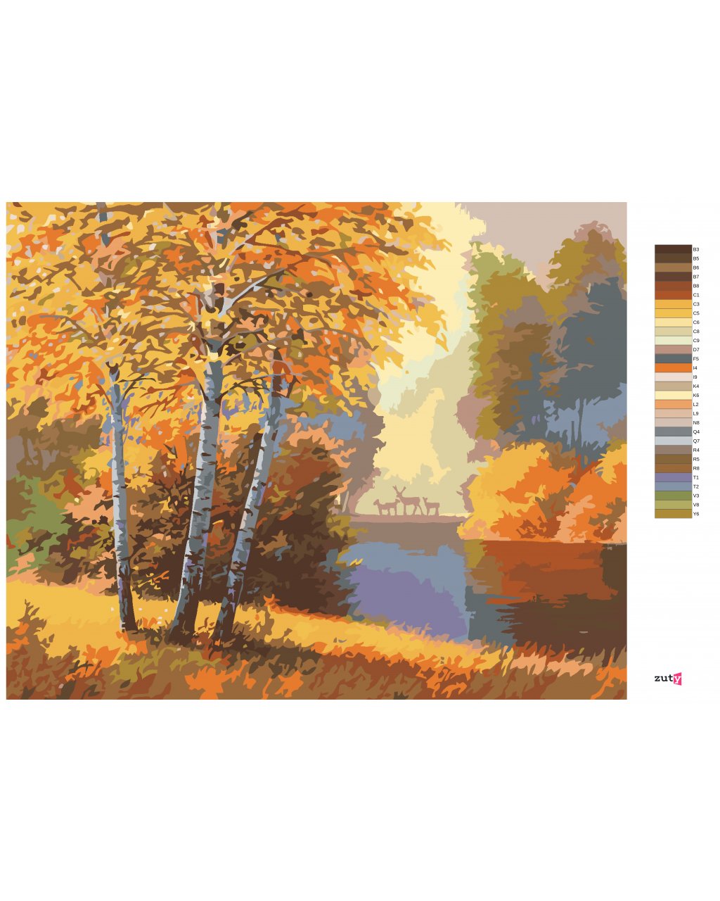 Maľovanie podľa čísel - JESENNÝ LES S RIEKOU A JELEŇMI