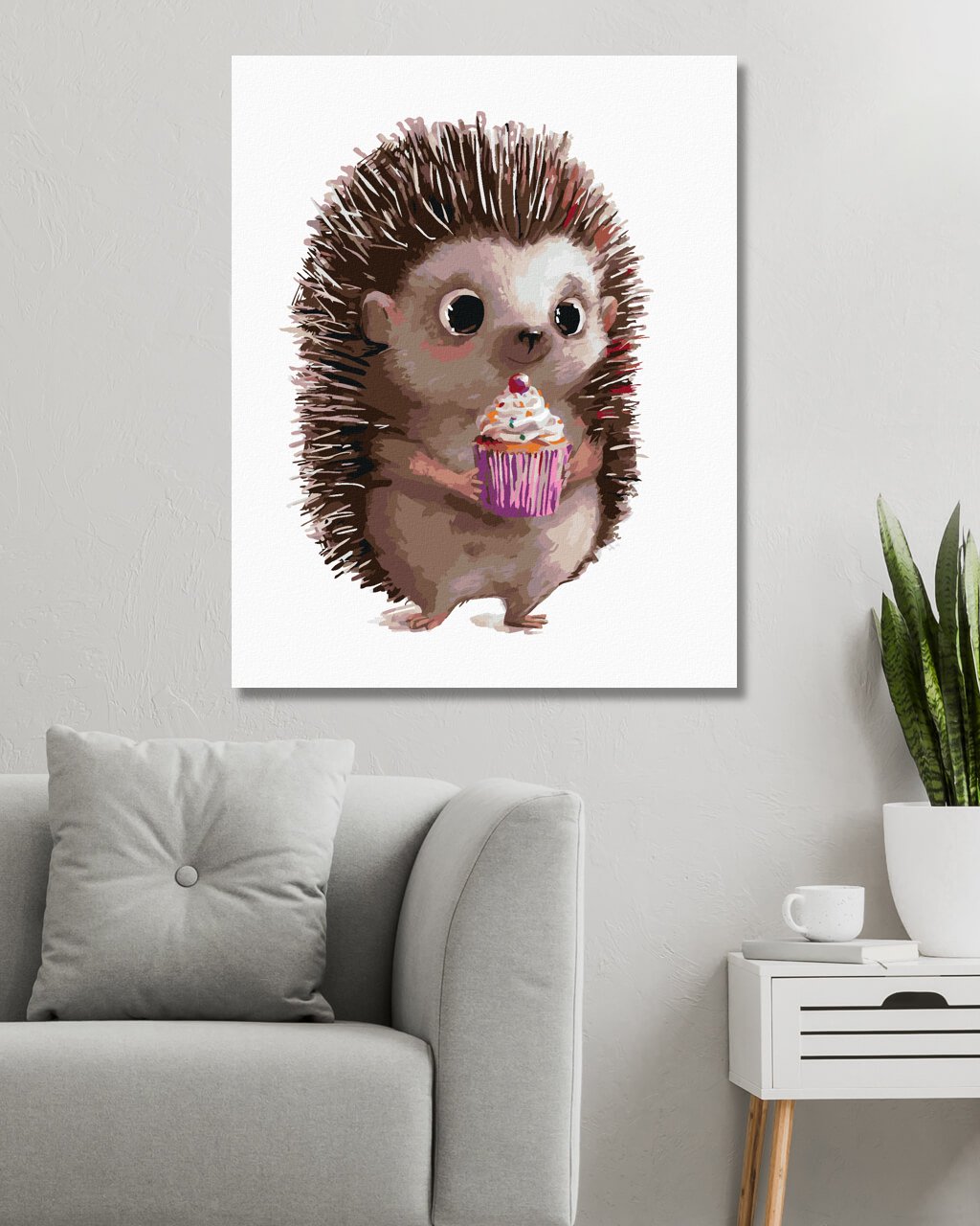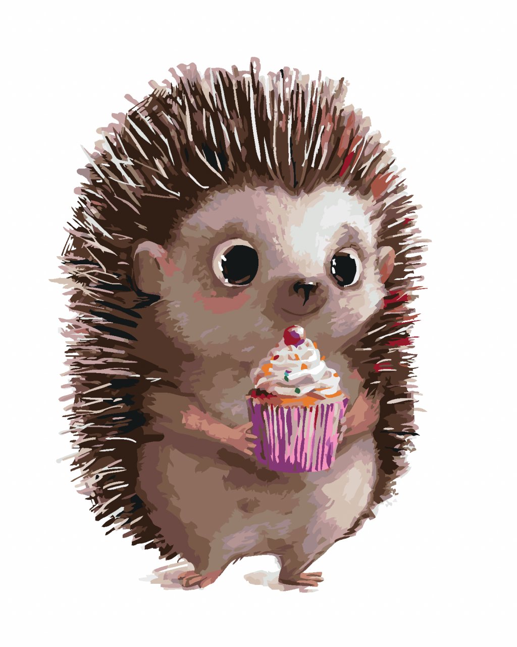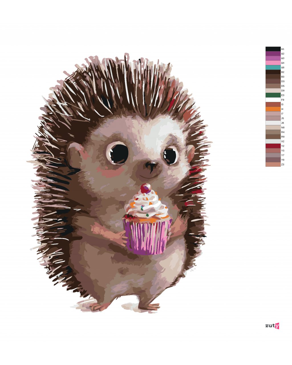 Maľovanie podľa čísel - JEŽKO A CUPCAKE