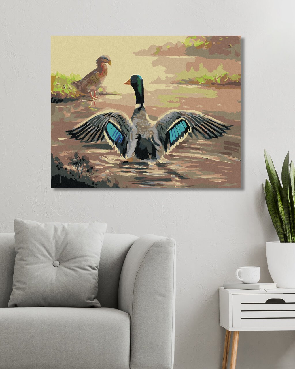 Maľovanie podľa čísel - KAČICA S ROZTIAHNUTÝMI KRÍDLAMI (D. RUSTY RUST)