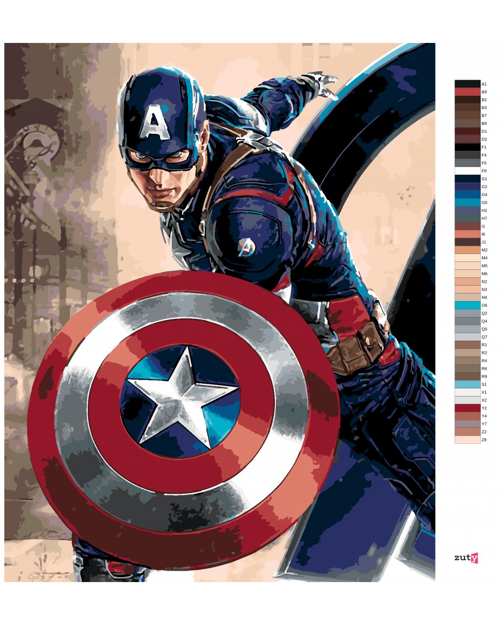 Maľovanie podľa čísel - KAPITÁN AMERIKA V BOJOVEJ POZÍCII