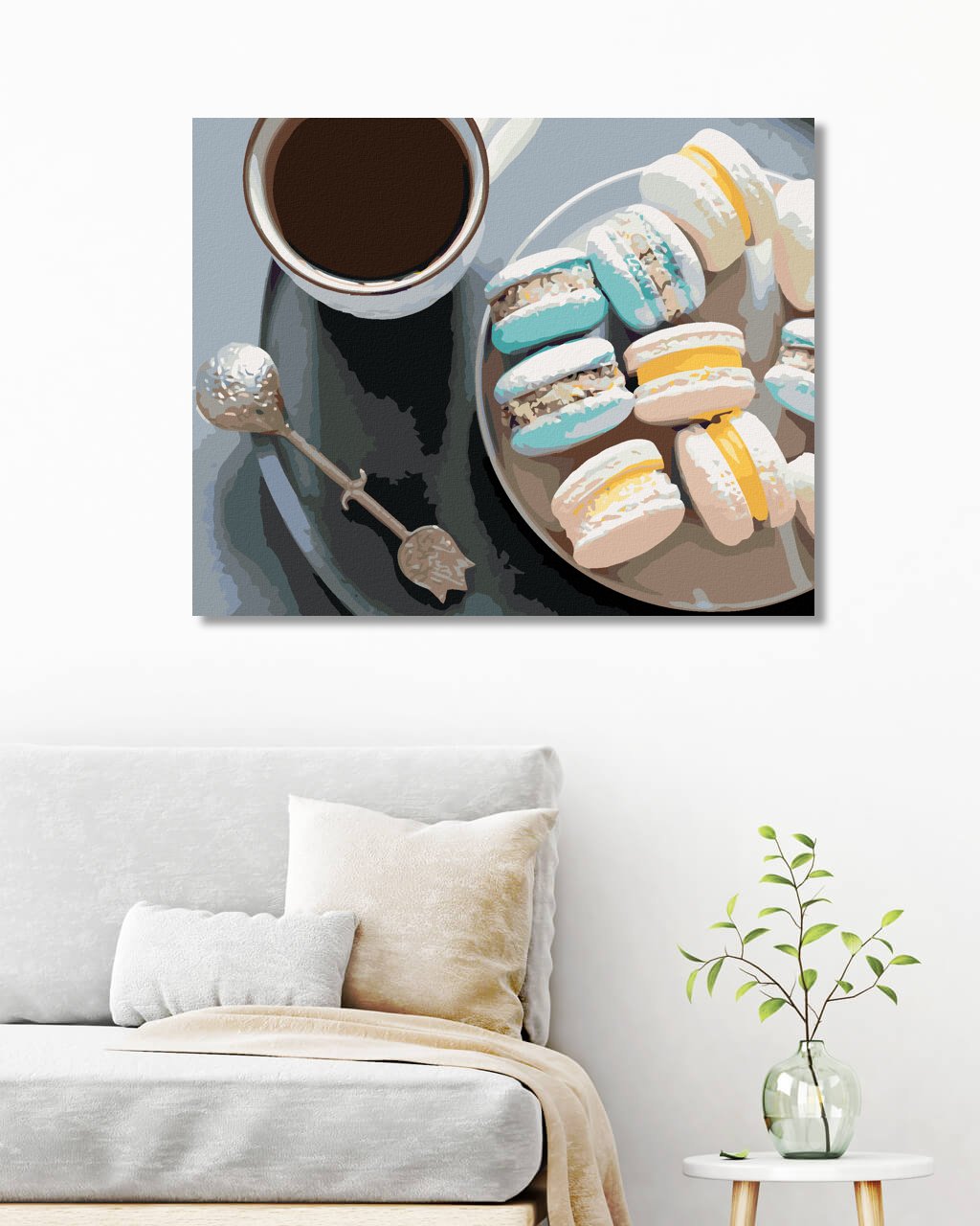 Maľovanie podľa čísel - KÁVA A MAKRONKY II