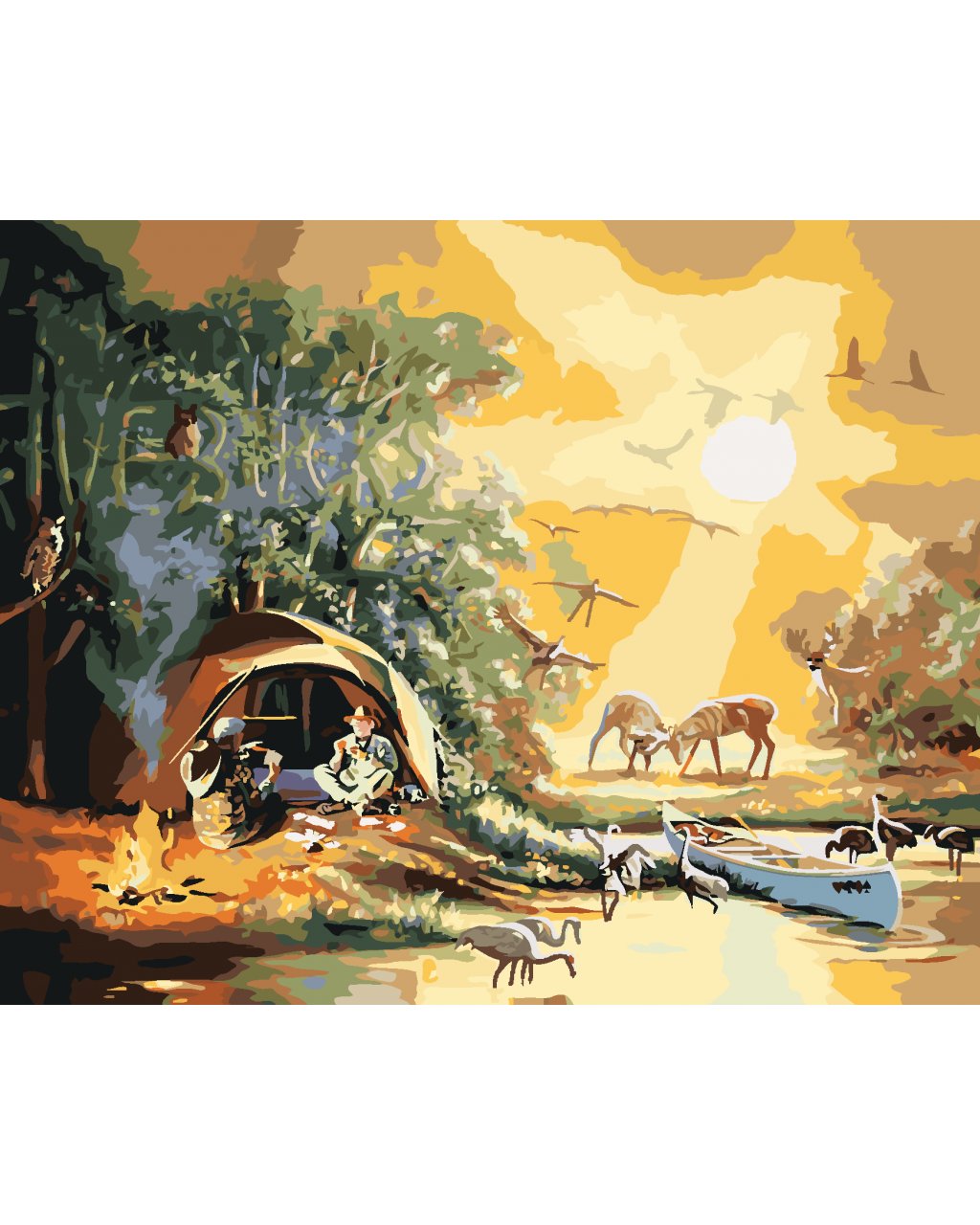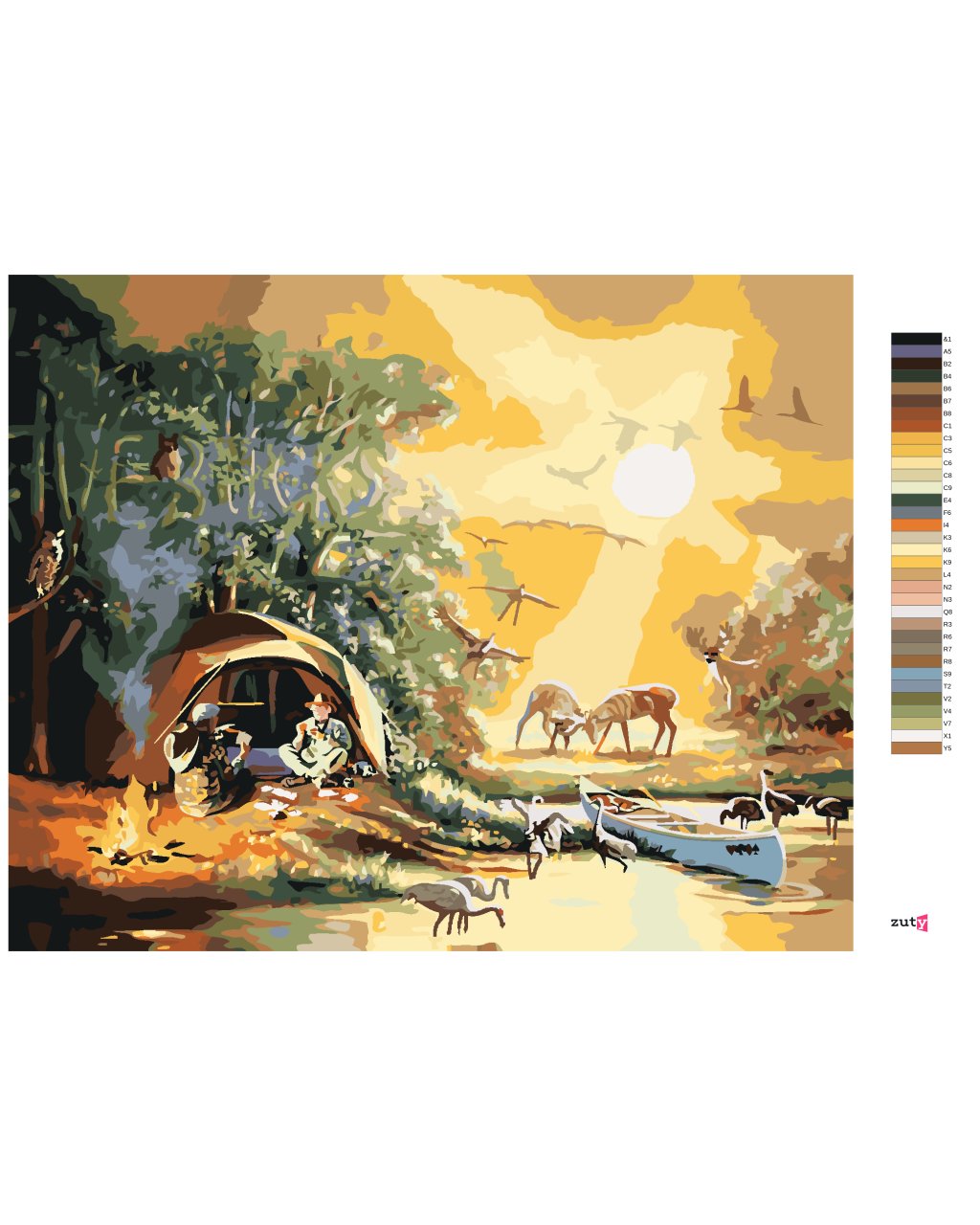 Maľovanie podľa čísel - KEMPOVANIE PRI JAZERE (D. RUSTY RUST)