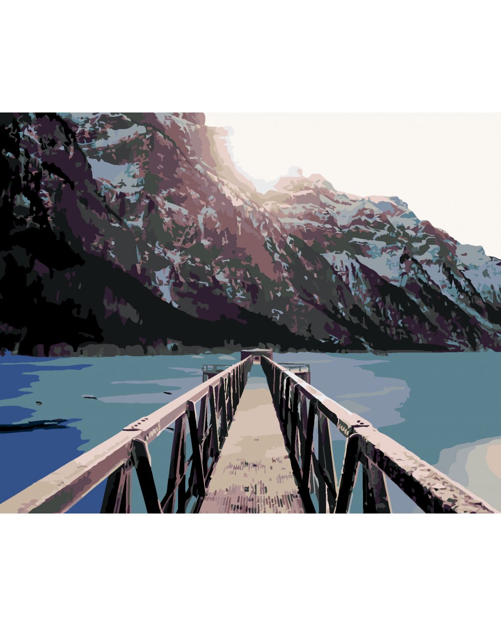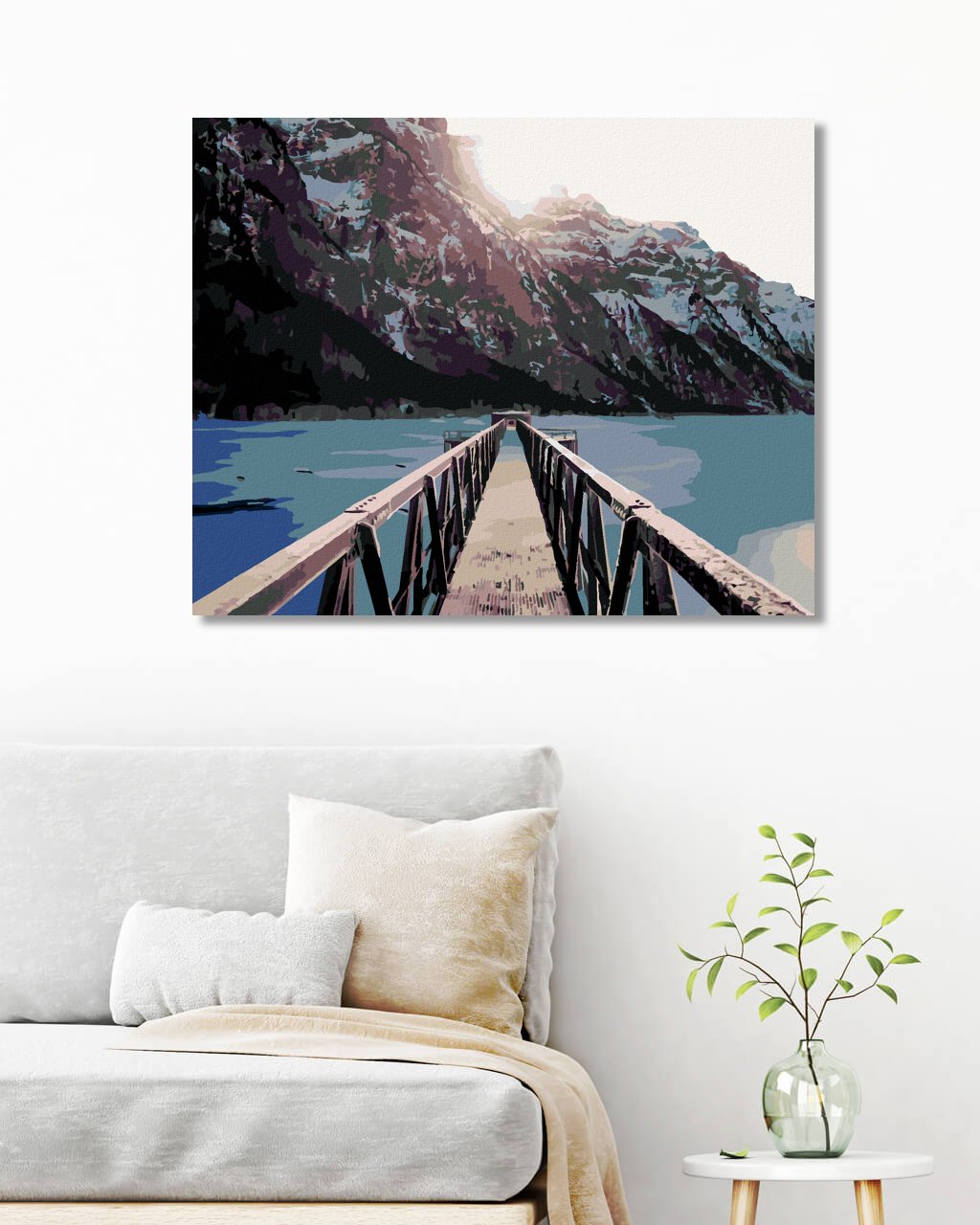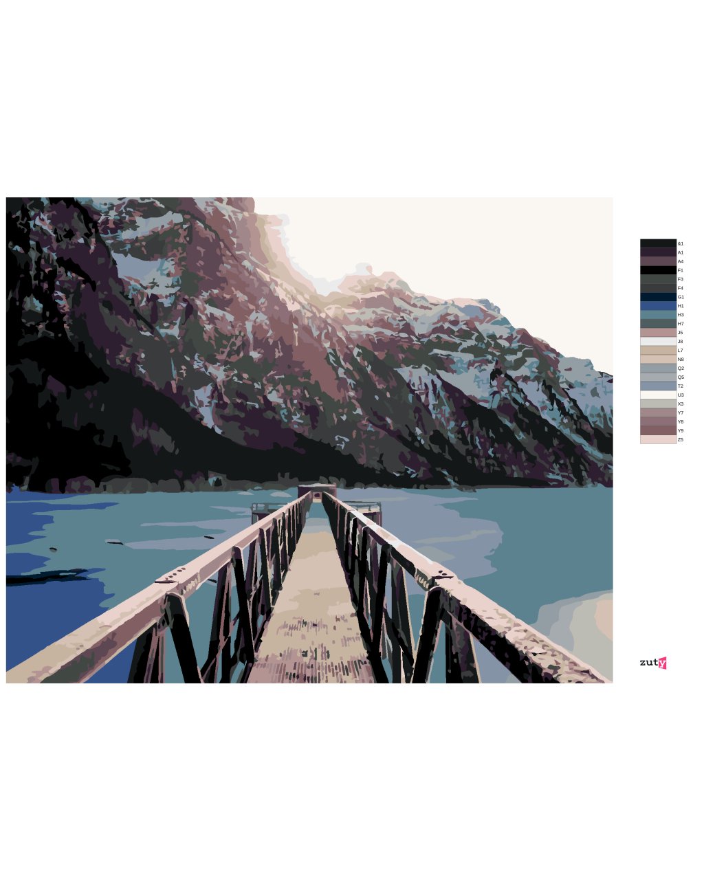 Maľovanie podľa čísel - KLÖNTHALERSEE V ZIME S MOSTÍKOM