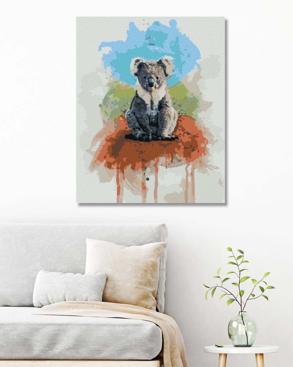Maľovanie podľa čísel - KOALA NA FAREBNOM POZADÍ